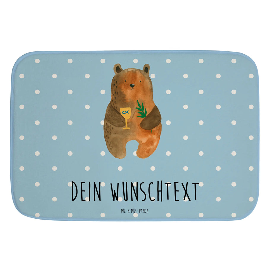 Der personalisierte Badvorleger Konfirmation-Bär von Mr. & Mrs. Panda ist das perfekte Geschenk für jeden, der seine Konfirmation feiert oder einem lieben Menschen Freude bereiten möchte. Mit einem süßen Bären, der einen goldenen Kelch in der Hand hält und einen Zweig in der anderen, bringt dieser Badvorleger einen Hauch von Festlichkeit in jedes Badezimmer. Der Slogan "Alles Gute zur Konfirmation" sorgt für eine liebevolle Note und lässt die Herzen höher schlagen. Ob für Freunde, Verwandte oder als Überraschung für das eigene Badezimmer – dieser Badvorleger ist eine tolle Möglichkeit, die Bedeutung dieses besonderen Anlasses zu würdigen.