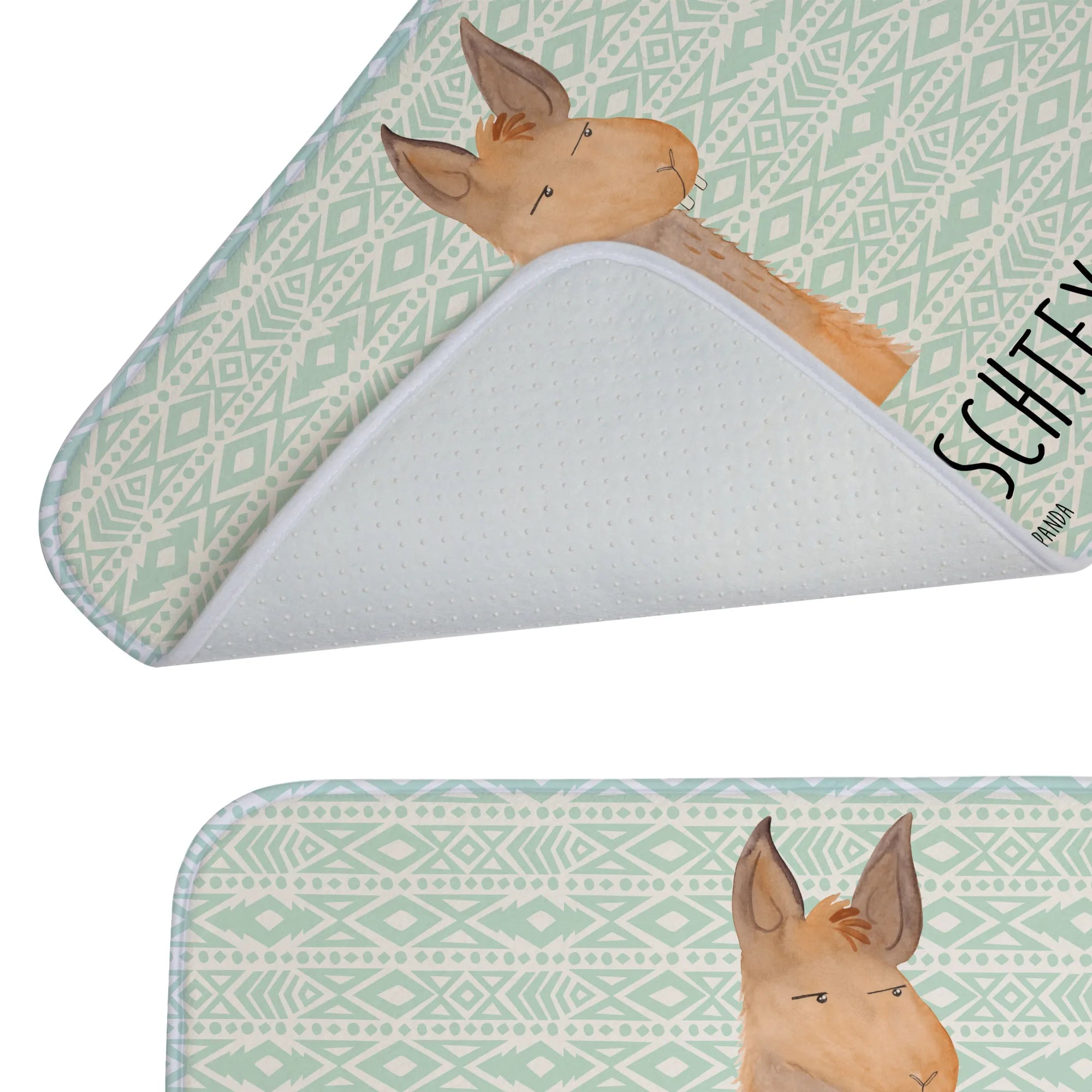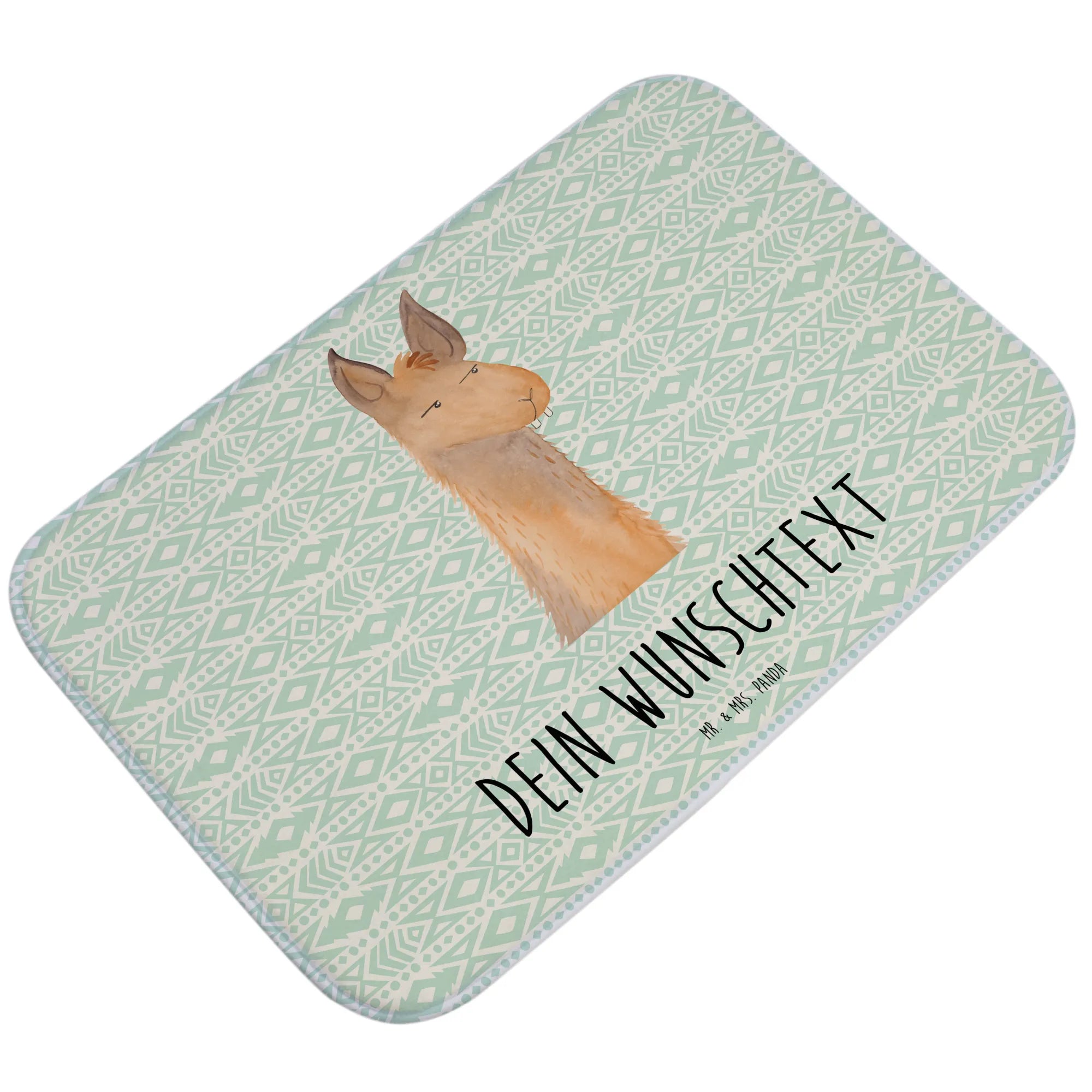 Entdecke den perfekten personalisierten Badvorleger "Lamakopf genervt" von Mr. & Mrs. Panda!
