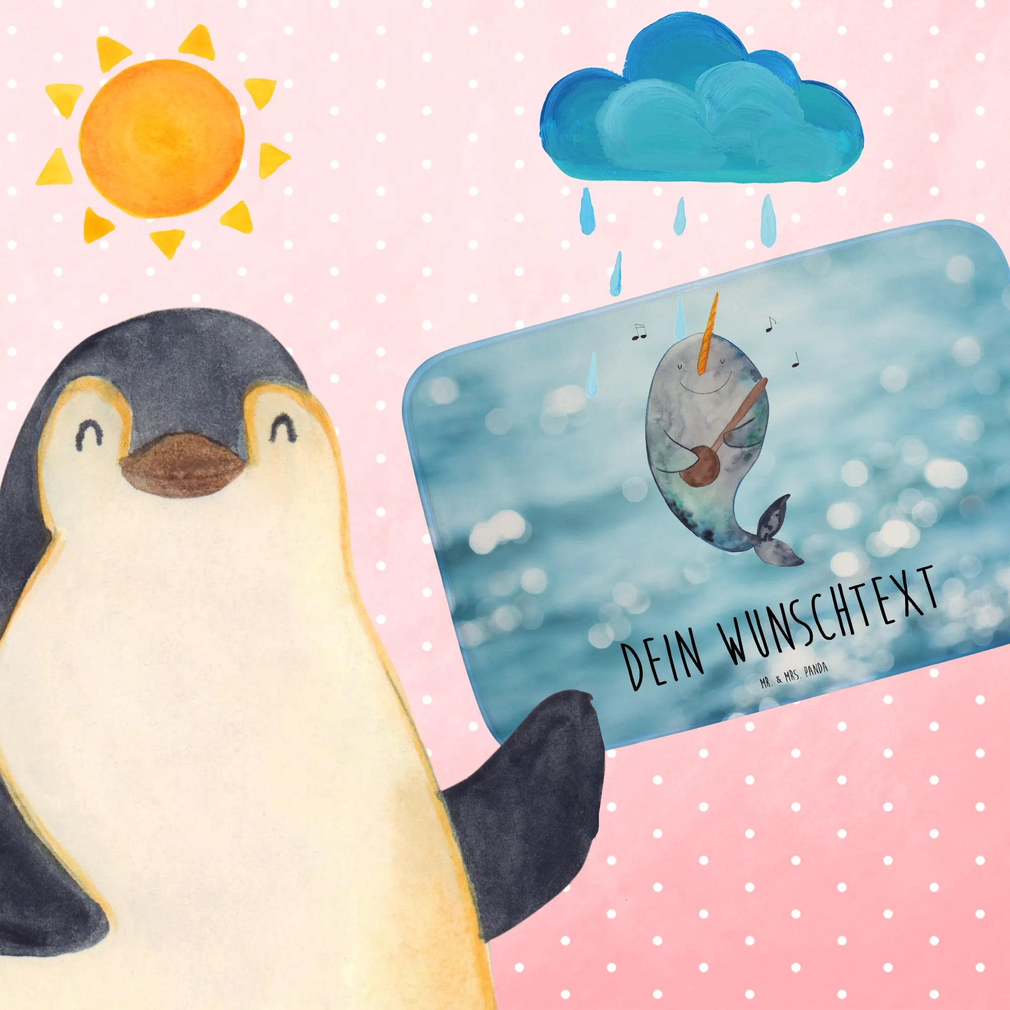 Personalisierter Badvorleger Narwal Gitarre – Mr. & Mrs. Panda