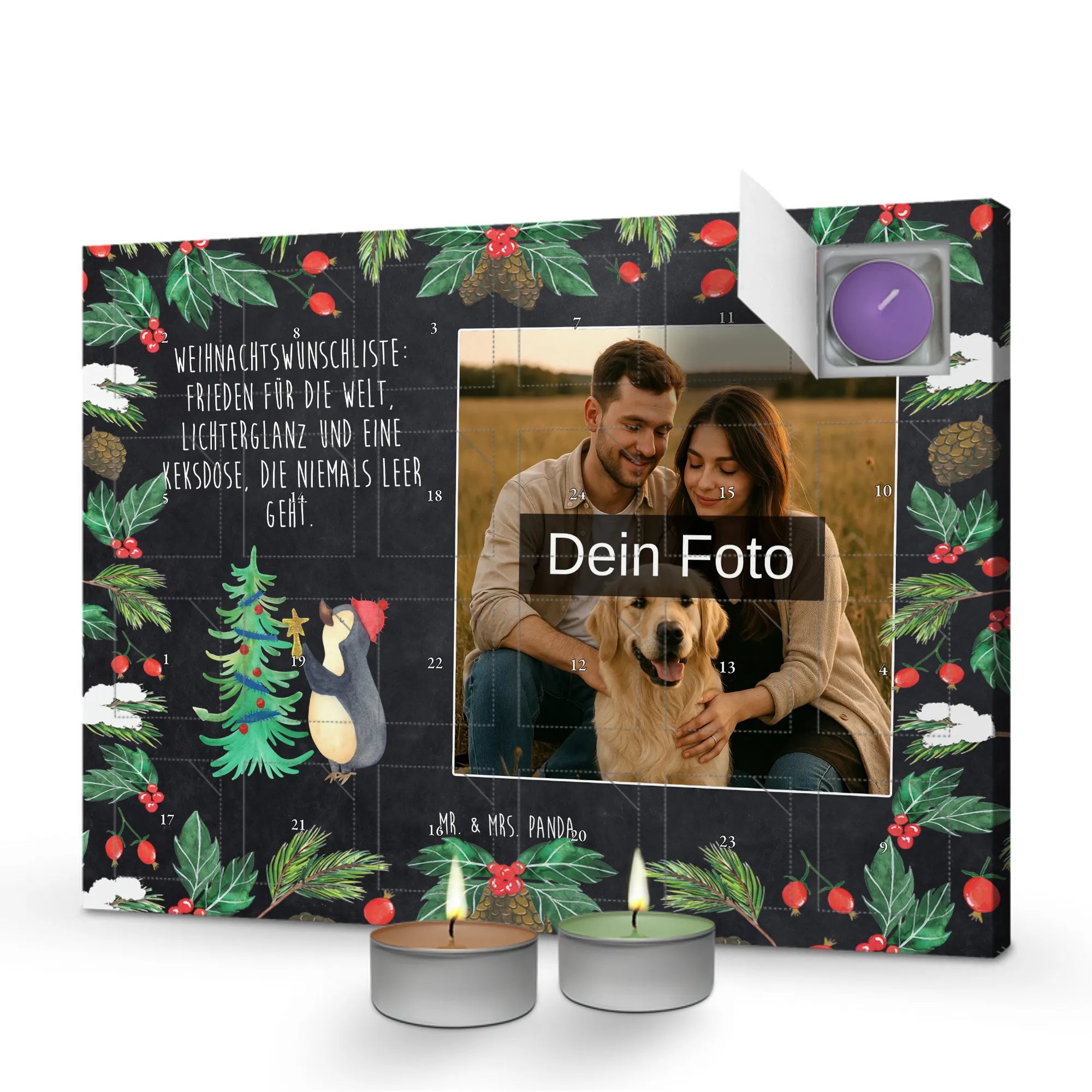 Personalisierter Duftkerzen Foto Adventskalender Pinguin Weihnachtsbaum