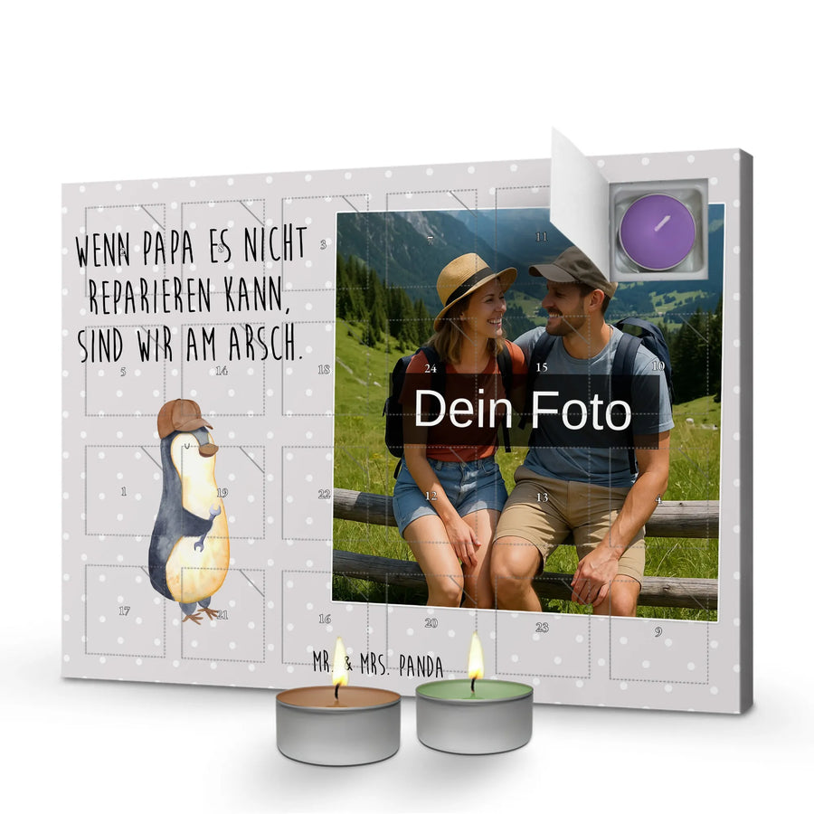 Der personalisierte Duftkerzen Foto Adventskalender "Wenn Papa es nicht reparieren kann, sind wir am Arsch" von Mr. & Mrs. Panda ist das ideale Geschenk für alle, die ihren Vater oder besten Freund zum Vatertag oder einfach zwischendurch mit einem einzigartigen Präsent erfreuen möchten.