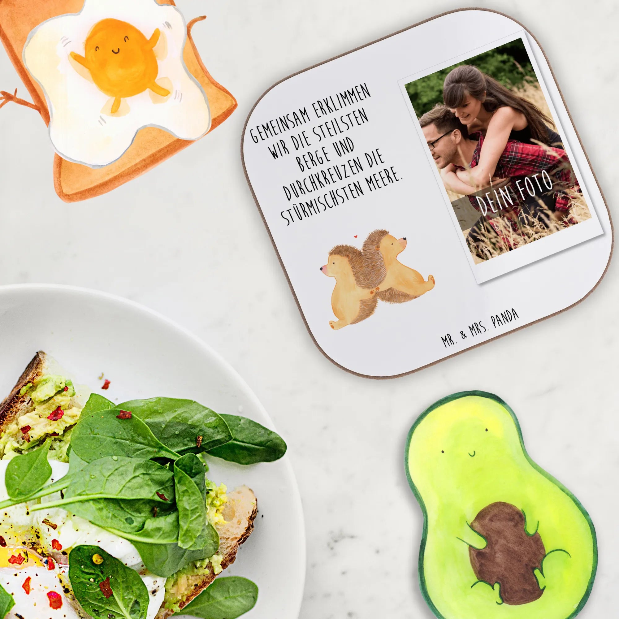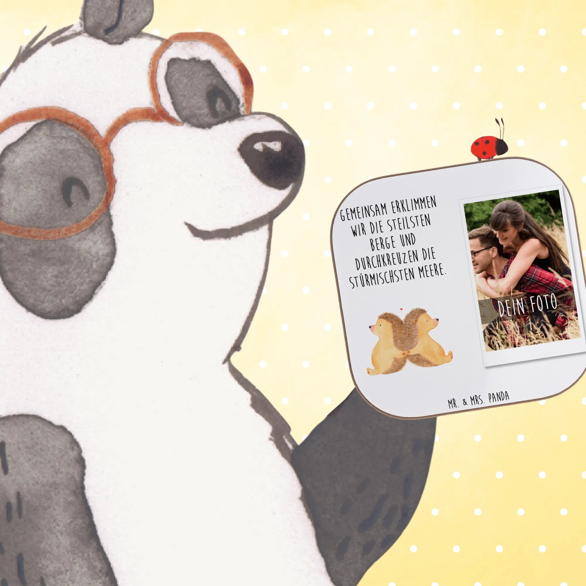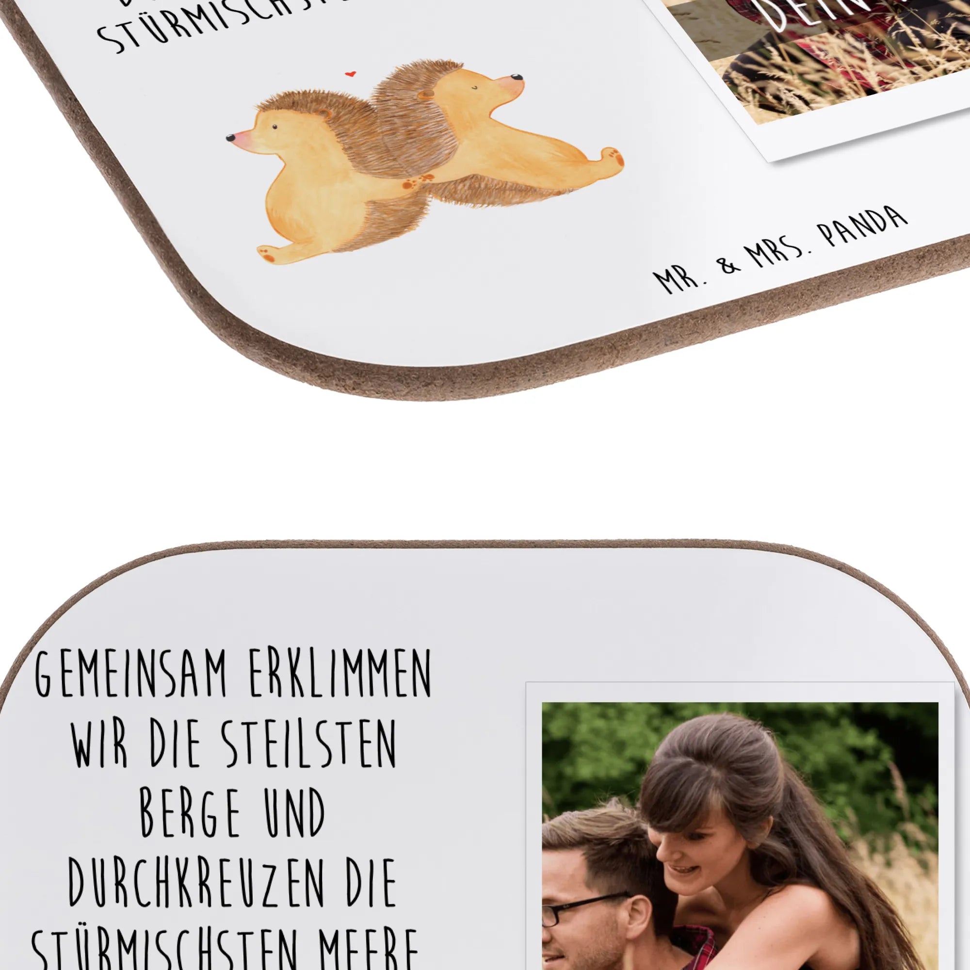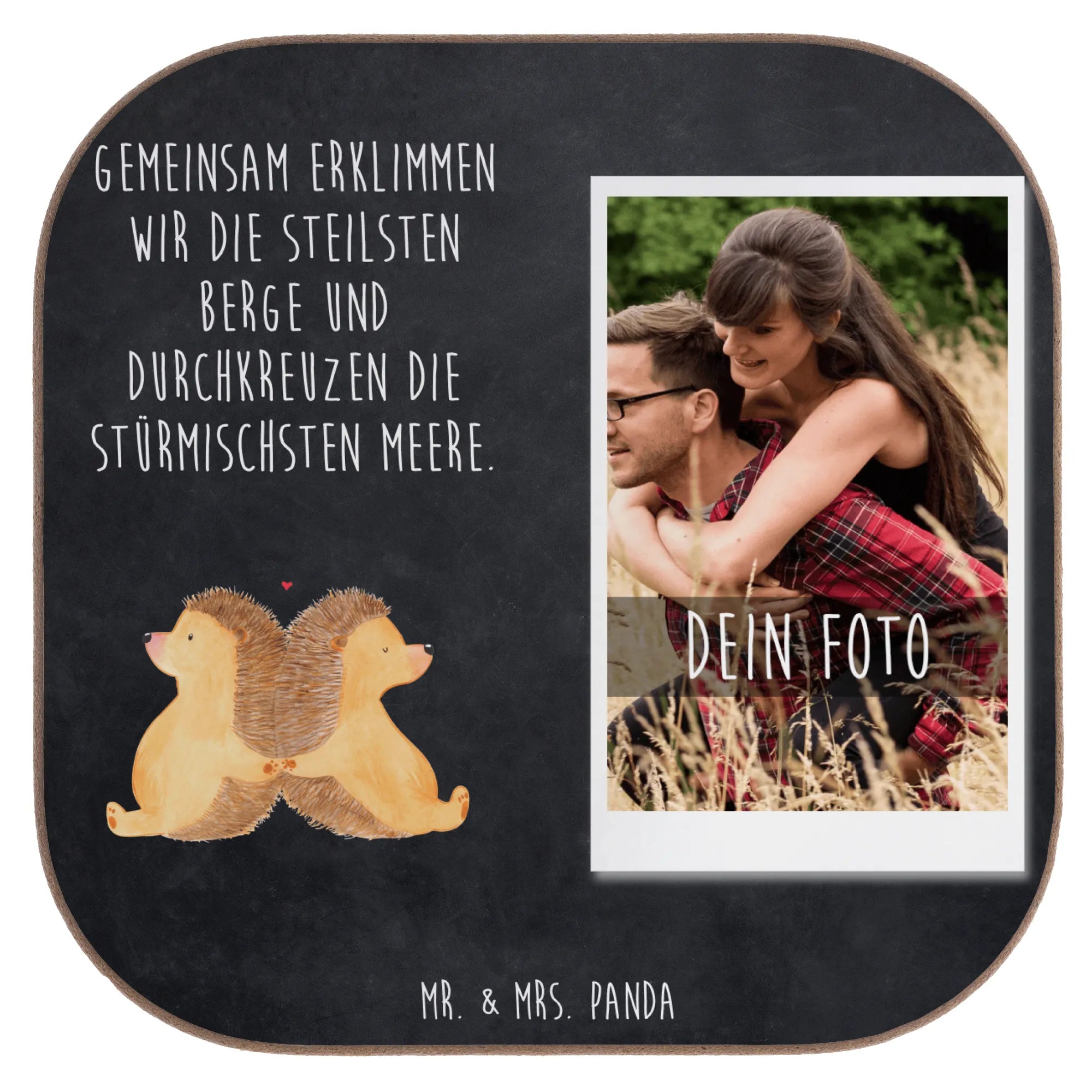 Der personalisierte Foto Untersetzer mit dem niedlichen Igel-Motiv händchenhaltend von Mr. & Mrs. Panda ist das perfekte Geschenk für alle, die ihre Liebe auf besondere Weise zeigen möchten. Durch die Möglichkeit der Personalisierung mit deinem Wunschtext wird dieser Untersetzer zu einem einzigartigen Liebesbeweis. Ob für den Jahrestag, die Verlobung oder einfach nur als liebevolles Geschenk für einen Lieblingsmenschen - dieser Untersetzer bringt Freude und Zuneigung in jeden Haushalt.