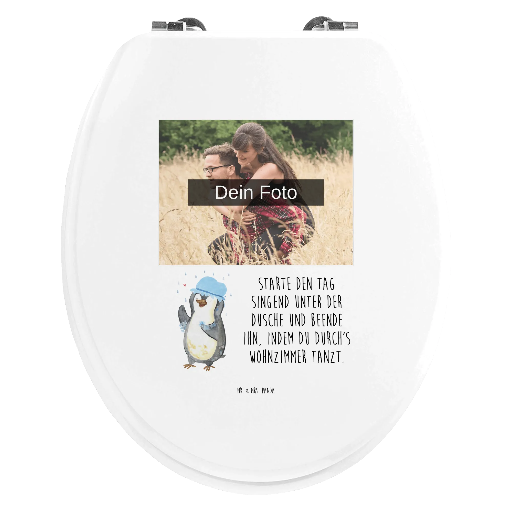 Personalisierter Foto WC Sitz Motiv Pinguin Duschen – Mr. & Mrs. Panda