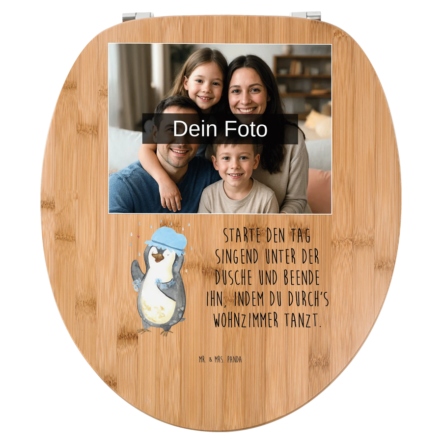 Personalisierter Foto WC Sitz Motiv Pinguin Duschen - Bambus