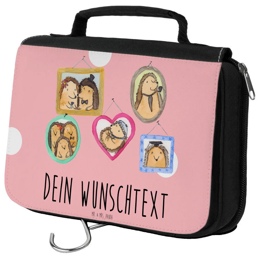 Personalisierter Kulturbeutel Igel Familie - Rot Pastell