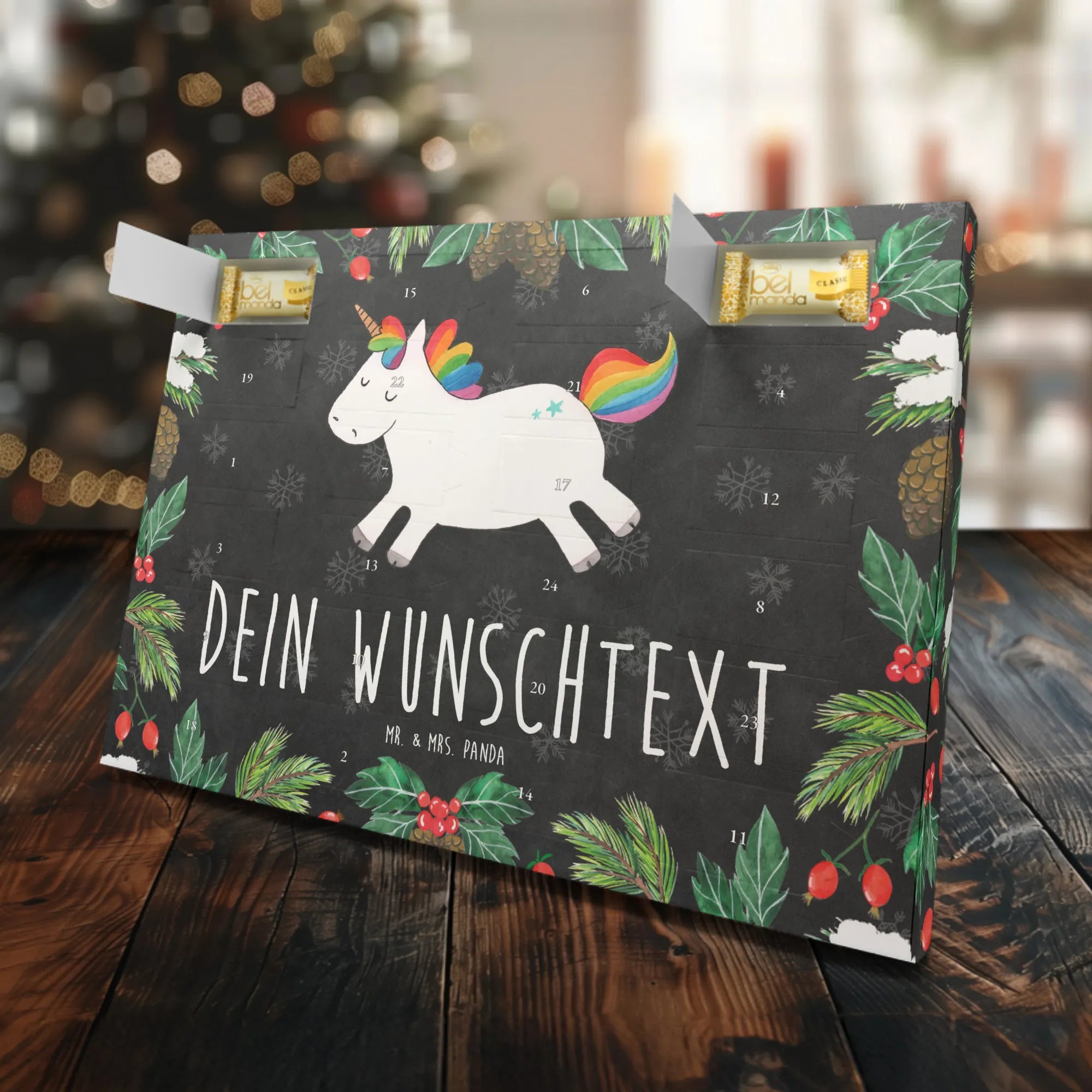 Die brillante Druckqualität und die edle seidenmatte Oberflächenveredelung geben dem Adventskalender eine ganz besondere Note. Durch seine individuelle Personalisierung mit Deinem Wunschtext wird das Geschenk zu einem einzigartigen Unikat, das sich wunderbar verschenken oder auch selbst behalten lässt.