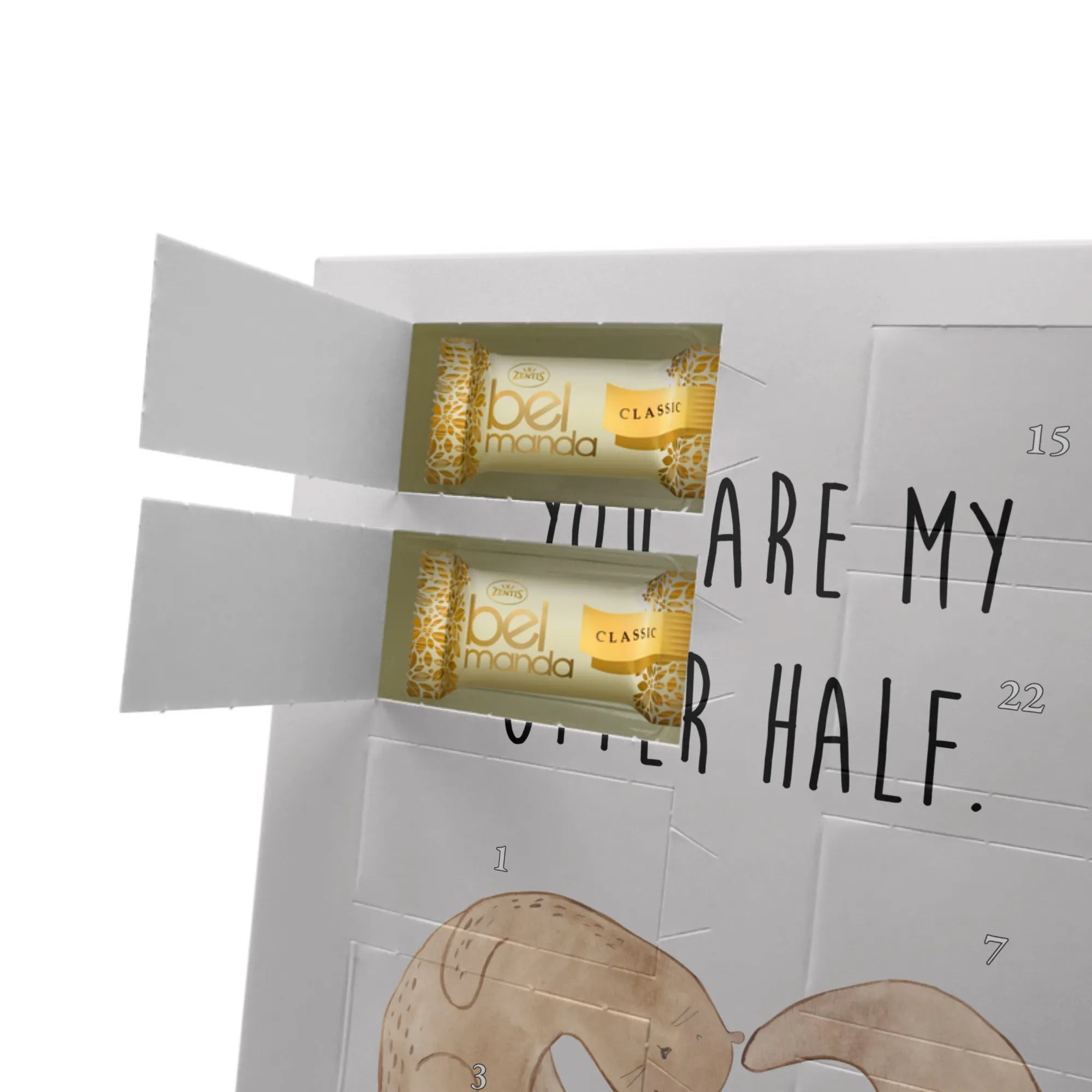 Der personalisierte Marzipan Foto Adventskalender mit dem entzückenden Otter Herz Motiv von Mr. & Mrs. Panda ist das perfekte Geschenk für deine bessere Hälfte. Stell dir vor: 24 süße Überraschungen warten darauf, entdeckt zu werden, und in jede Tür verbirgt sich ein edles Marzipan-Praliné, das nur darauf wartet, dir ein Lächeln ins Gesicht zu zaubern. Mit dem liebevoll handgezeichneten Otter, der ein Herz hält, vereinst du nicht nur einen köstlichen Genuss, sondern auch eine tolle Botschaft von Liebe und Zuneigung.