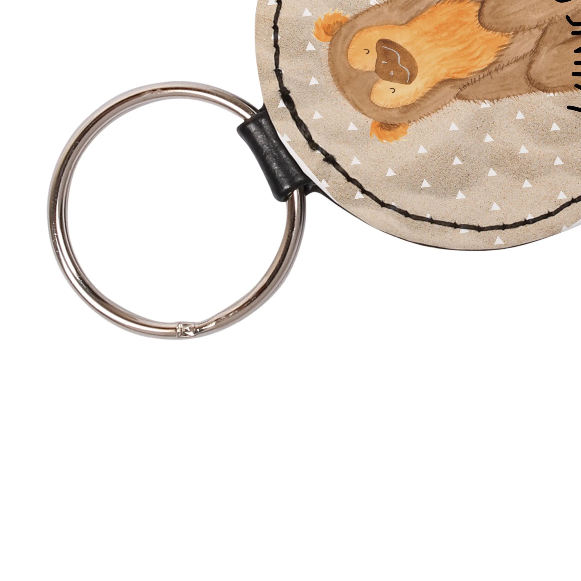 Du suchst nach einem ganz besonderen Geschenk, das sowohl Freude als auch einen tiefen Sinn vermittelt? Unser personalisierter Schlüsselanhänger mit dem niedlichen Affen aus der Afrika Kollektion von Mr. & Mrs. Panda ist genau das, was du brauchst! Dieser wunderschöne Schlüsselanhänger wird aus edlem Premium Kunstleder gefertigt und ist mit einem liebevollen Affenmuster versehen. Der kleine selbstbewusste Affe Konrad erinnert uns daran, dass Selbstliebe und Respekt für dich selbst die wichtigsten Dinge sind. Unter dem Motiv steht: 'Und manchmal muss man sich einfach daran erinnern, dass man nicht jedem gefallen muss...', was gerade in stressigen Zeiten zum Nachdenken anregt.