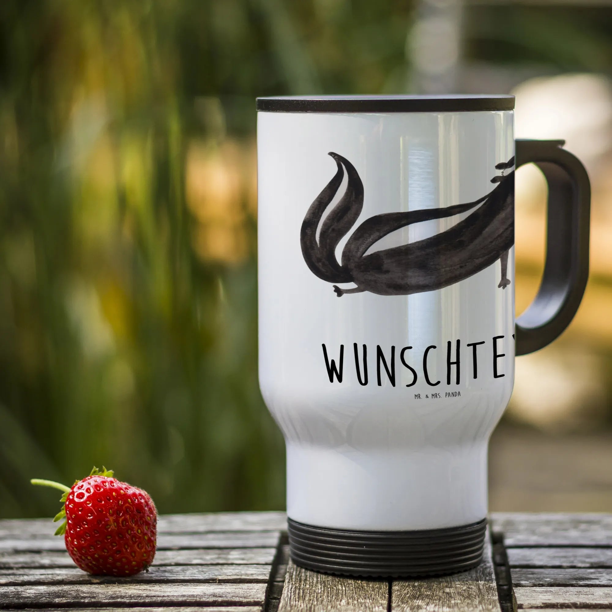Zusammengefasst: Der personalisierte Thermobecher mit dem Stinktier Yoga-Motiv ist das perfekte Geschenk für alle, die Natur, Yoga und persönliche Geschenke schätzen. Verschenke Lächeln und gute Laune mit diesem einzigartigen Thermobecher von Mr. & Mrs. Panda – Du wirst sehen, er wird geliebt und geschätzt werden!