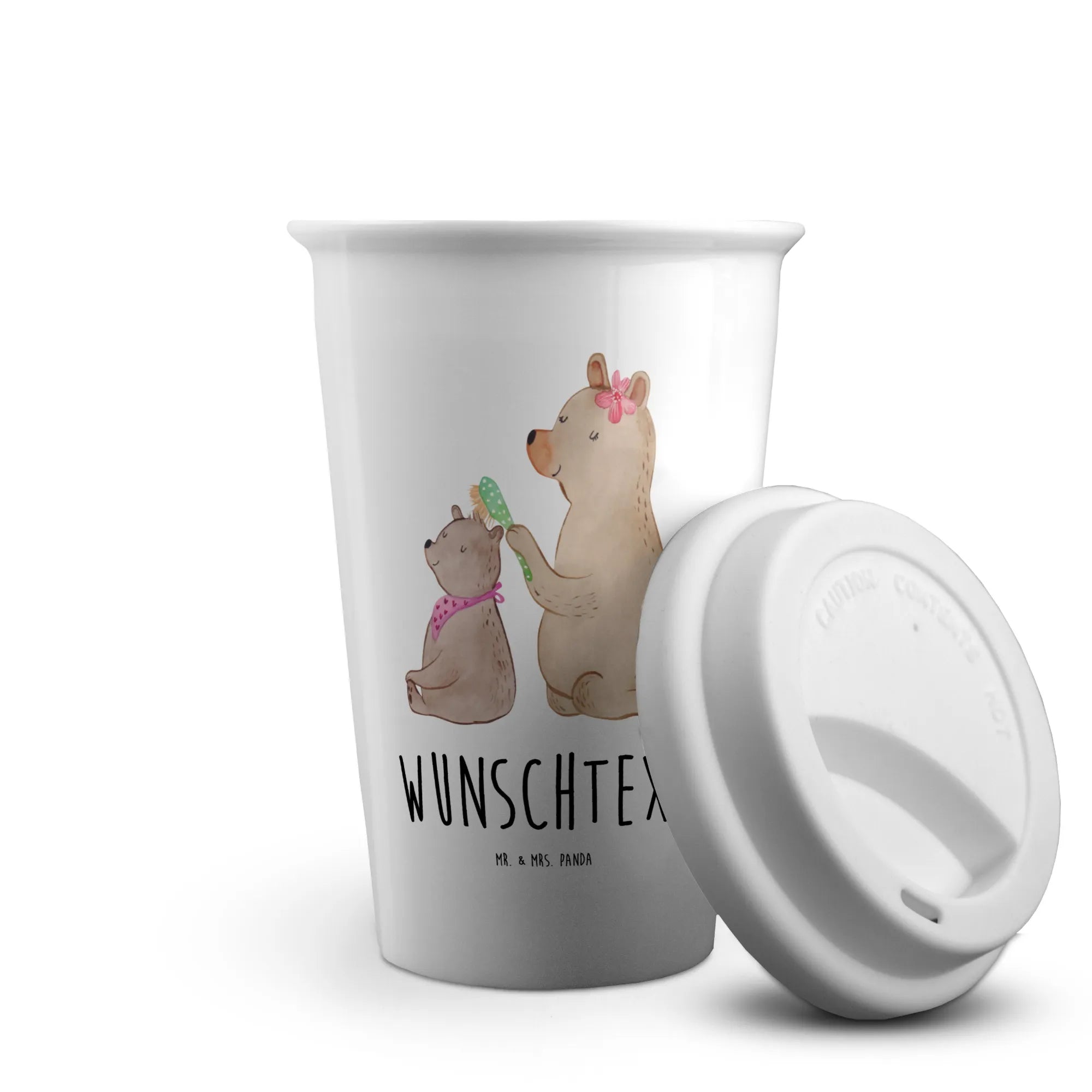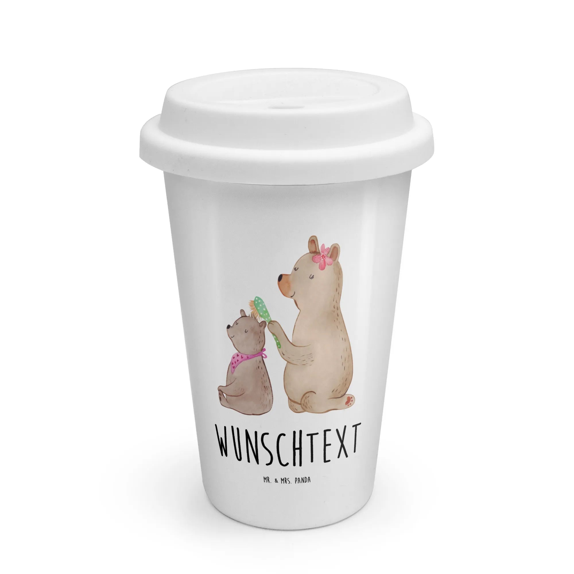 Das liebevoll gestaltete Motiv, ein großer Bär, der einen kleineren Bären mit zärtlicher Hingabe das Fell bürstet, vermittelt eine warme familiäre Atmosphäre der Fürsorge und Zuneigung. Und das Beste? Du kannst diesen Becher personalisieren! Füge den Namen Deiner Mama oder eine persönliche Botschaft hinzu und mache das Geschenk ganz individuell.