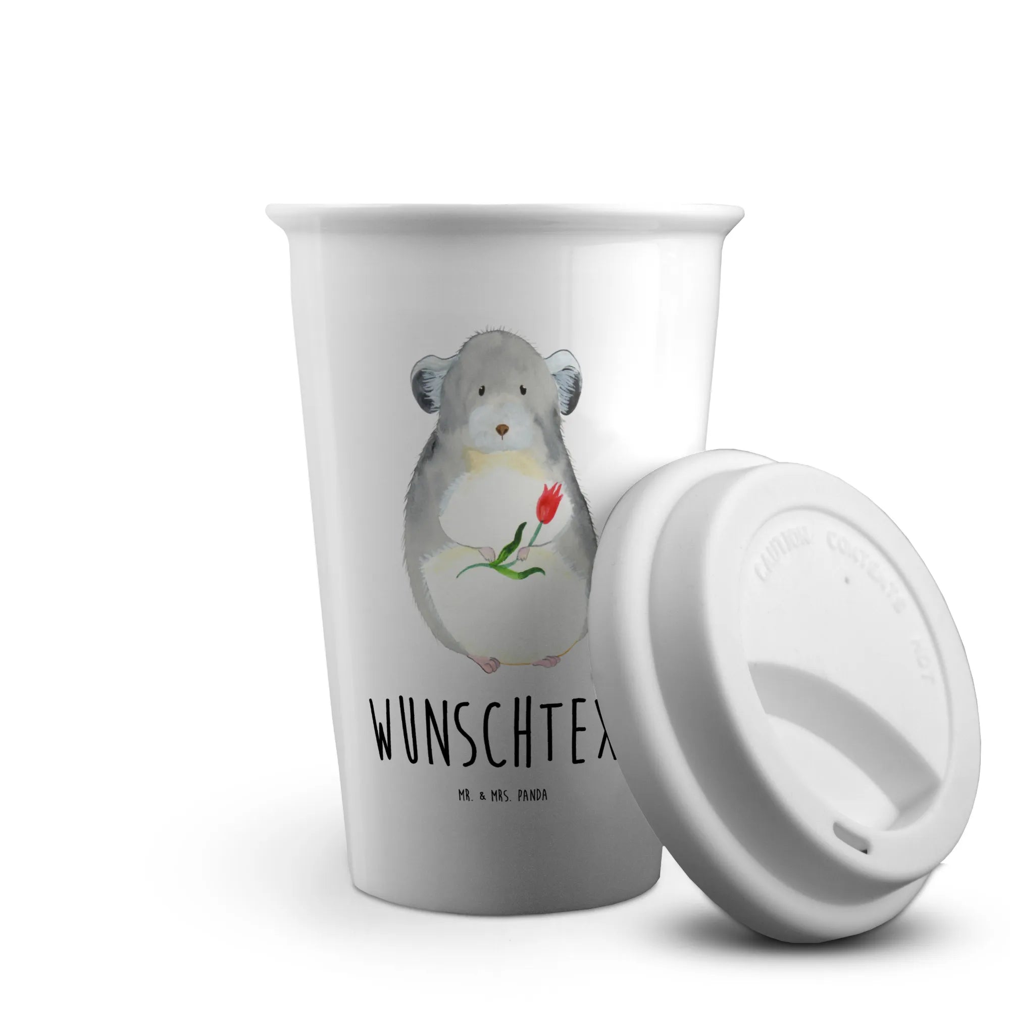 Die niedliche Illustration eines Chinchillas, das mit großen Augen und einer bunten Blume in der Hand an Dich lächelt, bringt gute Laune in Deinen Alltag. Der Becher ist ideal für alle, die oft im Büro sind oder gerne mit ihrem Kaffee to go durch den Alltag gehen. Du kannst ihn ganz nach Deinem Geschmack personalisieren – sei es mit Deinem Namen oder einem liebevollen Spruch!