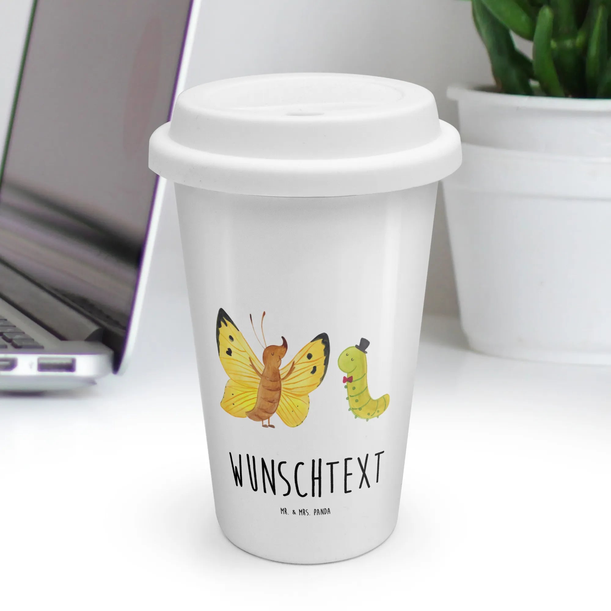 Personalisierter To Go Becher Raupe Schmetterling