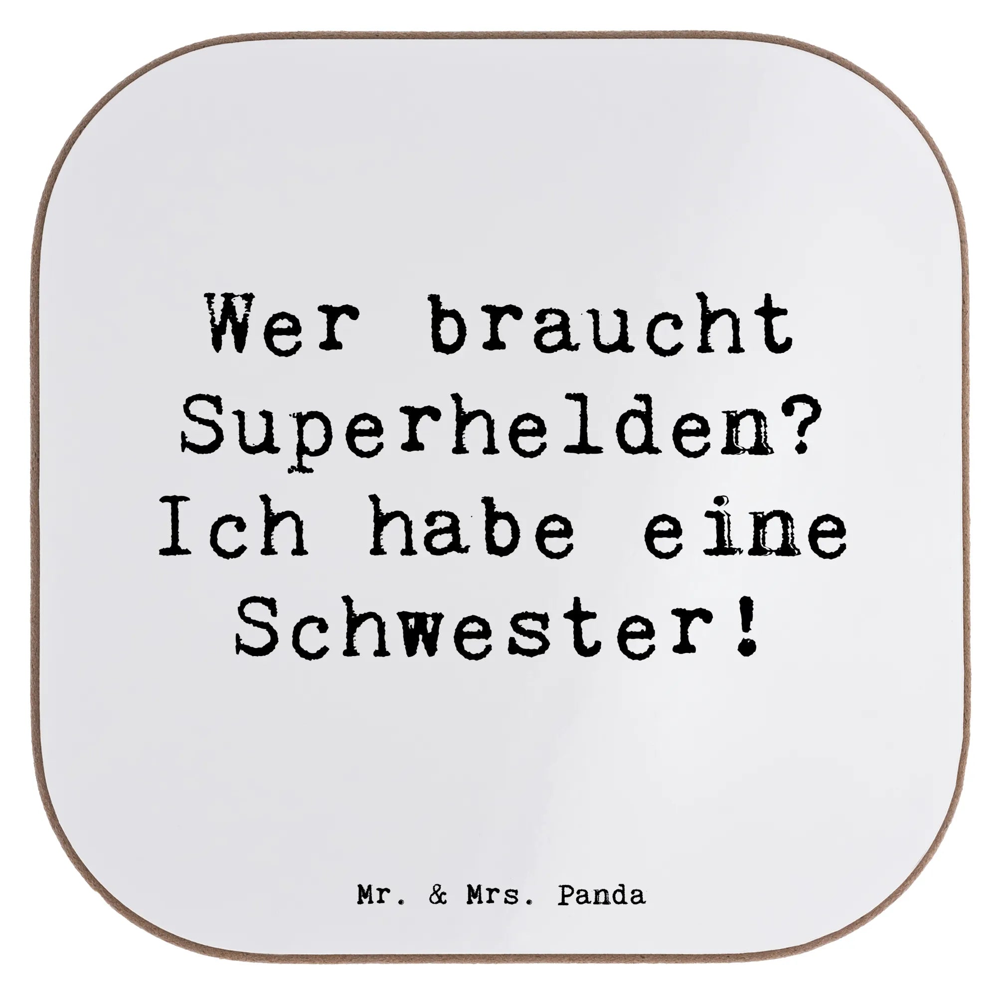 Der personalisierte Untersetzer "Schwester" von Mr. & Mrs. Panda ist das perfekte Geschenk, um die besondere Verbindung zwischen Schwestern zu feiern! Mit einem liebevollen Design und dem witzigen Slogan "Wer braucht Superhelden? Ich habe eine Schwester!" bringt dieser Untersetzer nicht nur Freude in jede Wohnung, sondern schützt auch deinen Tisch vor lästigen Kratzern und Abdrücken. 😊