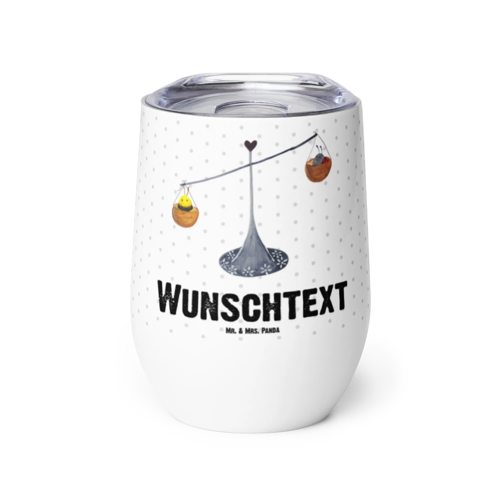 Mit einer Kapazität von 375 ml bietet dieser wunderschöne, personalisierbare Weinbecher genügend Platz für dein Lieblingsgetränk, sei es ein leckerer Glühwein oder ein kühler Sommerwein. Das stilvolle Design wird durch die charmante Illustration von Marienkäfer und Hummel ergänzt, die für die Balance der Waage stehen. Jede Tasse zeigt den Spruch „Charmant und warmherzig wie eine Waage“ und sorgt für eine liebevolle persönliche Note.