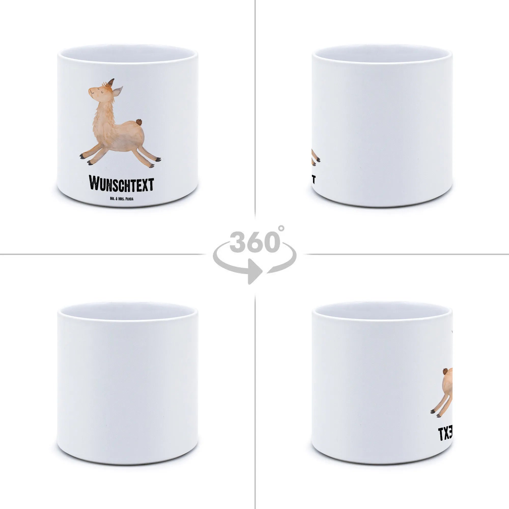 Personalisierter XL Blumentopf Lama springend – Mr. & Mrs. Panda