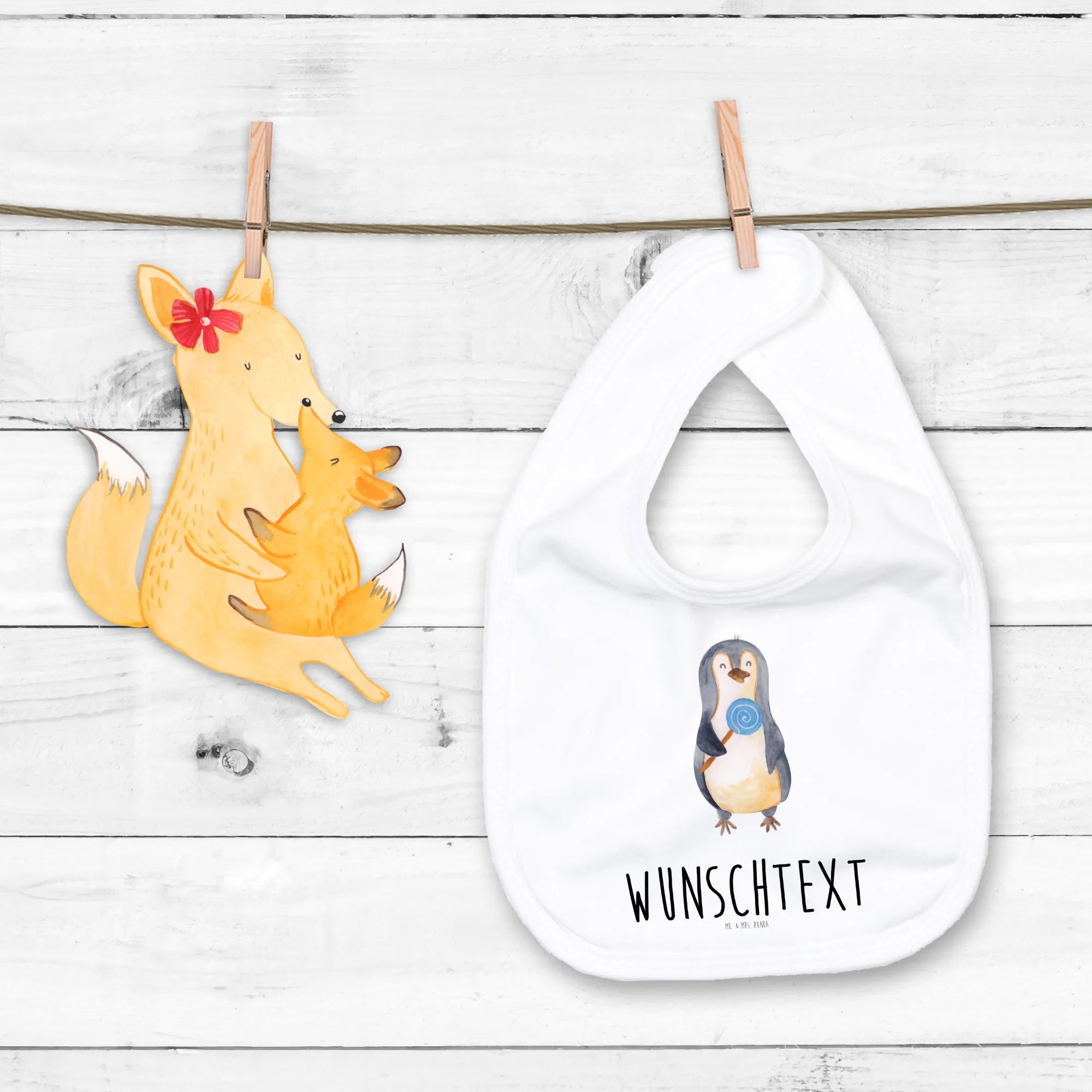 Personalisiertes Babylätzchen Pinguin Lolli – Mr. & Mrs. Panda