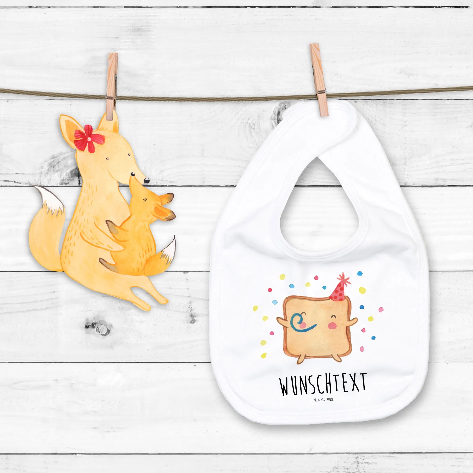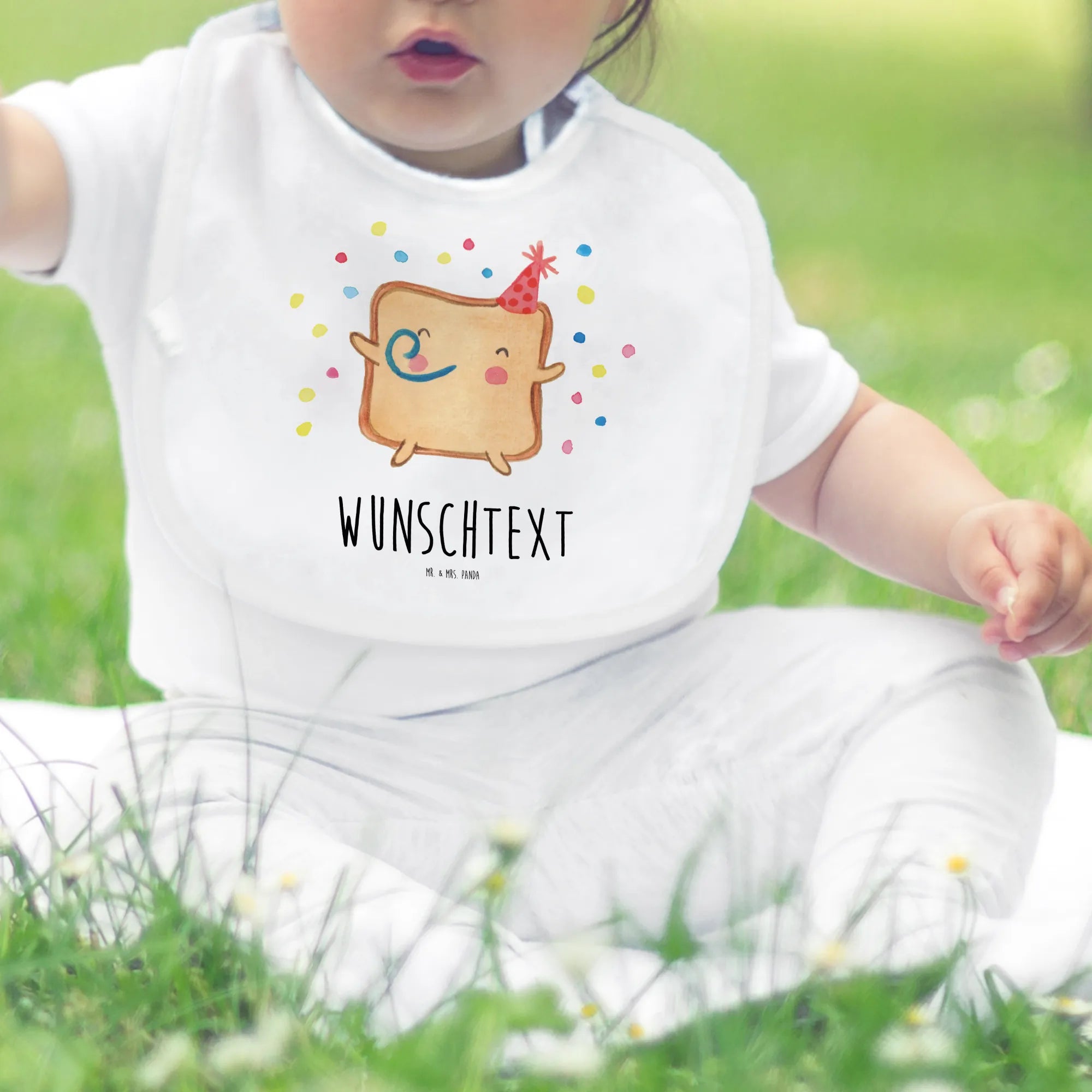 Das personalisierte Babylätzchen "Toast Party" aus der Kollektion Liebe von Mr. & Mrs. Panda ist das ideale Geschenk für Neugeborene und ihre Eltern. Es verbindet Funktionalität mit einem liebevollen, fröhlichen Design, das die Herzen höher schlagen lässt. Mit dem süßen Motiv eines lächelnden Toasts, der einen Partyhut trägt, bringt dieses Lätzchen Freude in den Alltag der Kleinsten.
