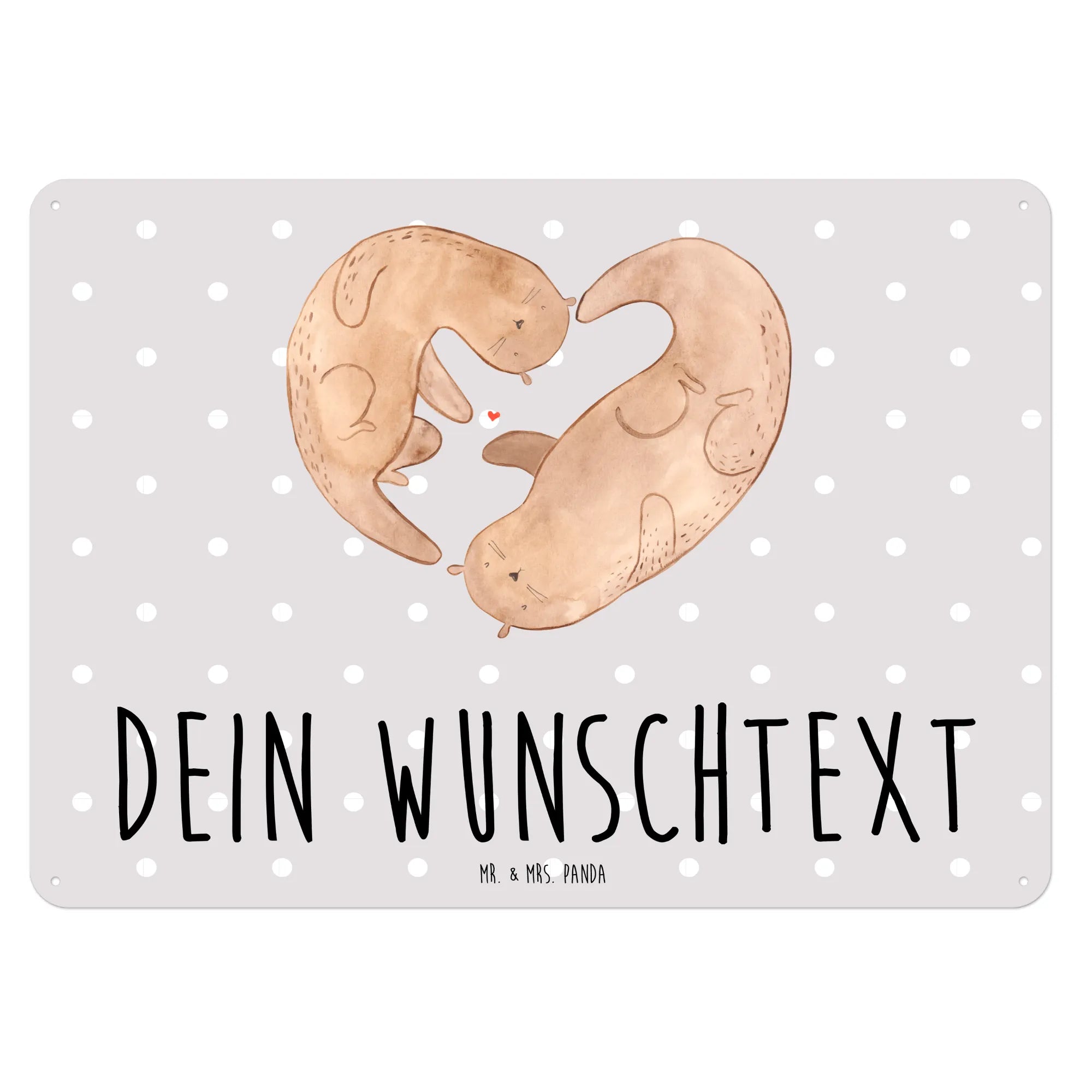 Personalisiertes Blechschild Otter Herz - DIN A3 - Grau Pastell
