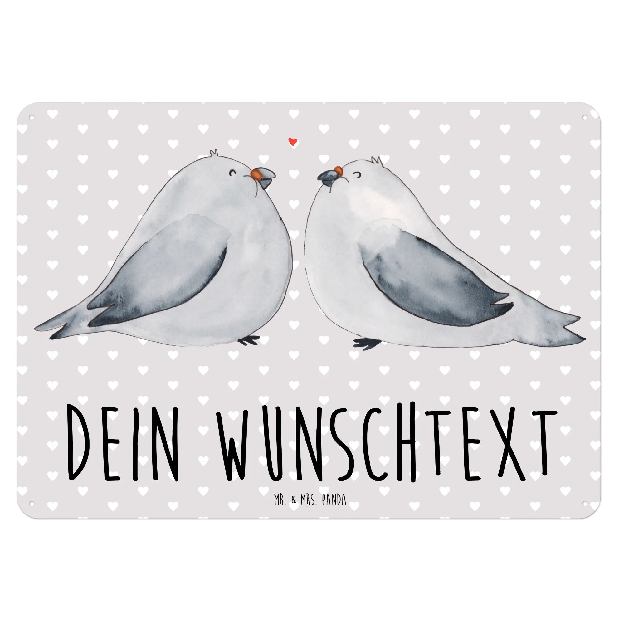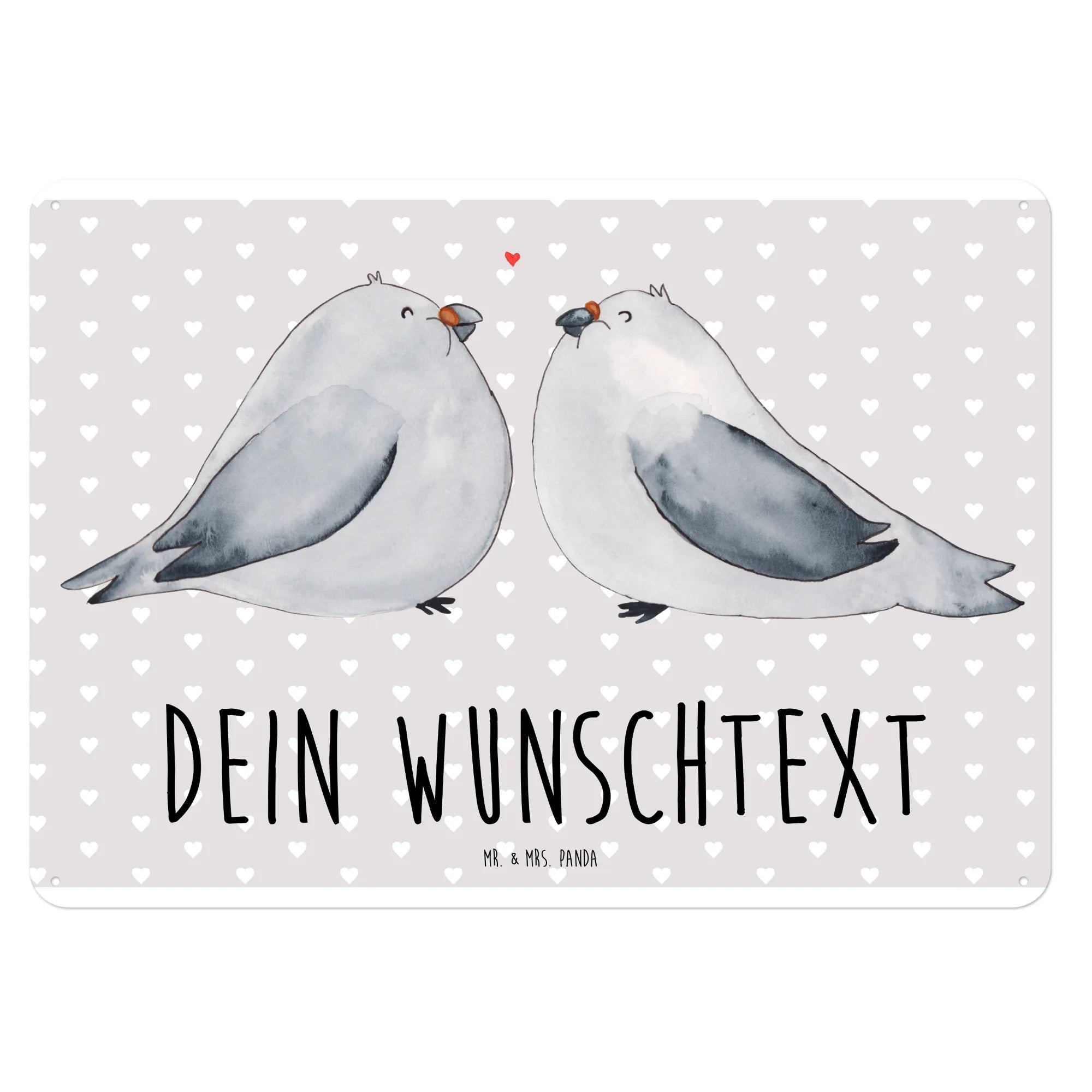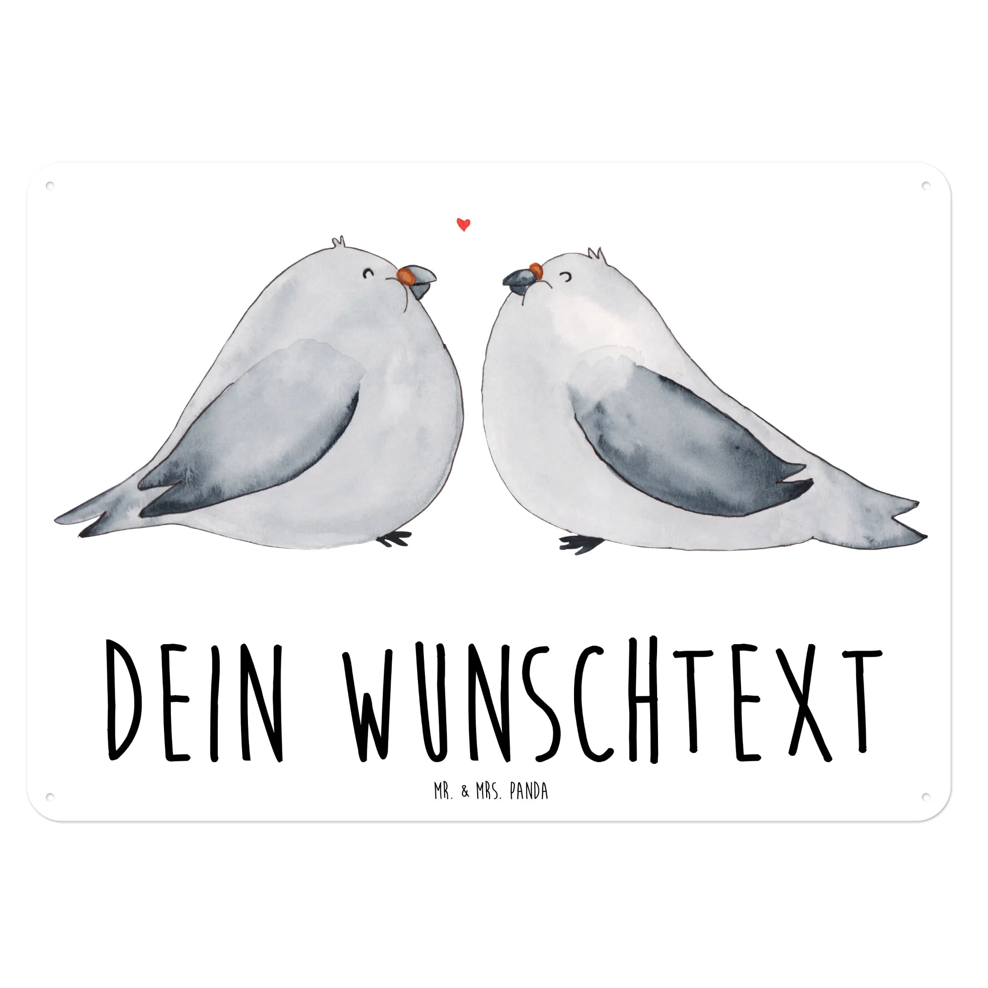 Entdecke das bezaubernde personalisierte Blechschild mit dem Motiv der Turteltauben Liebe von Mr. & Mrs. Panda! Dieses hochwertige Schild ist das perfekte Geschenk für all jene, die ihre Liebe und Zuneigung auf eine ganz besondere Art ausdrücken möchten.