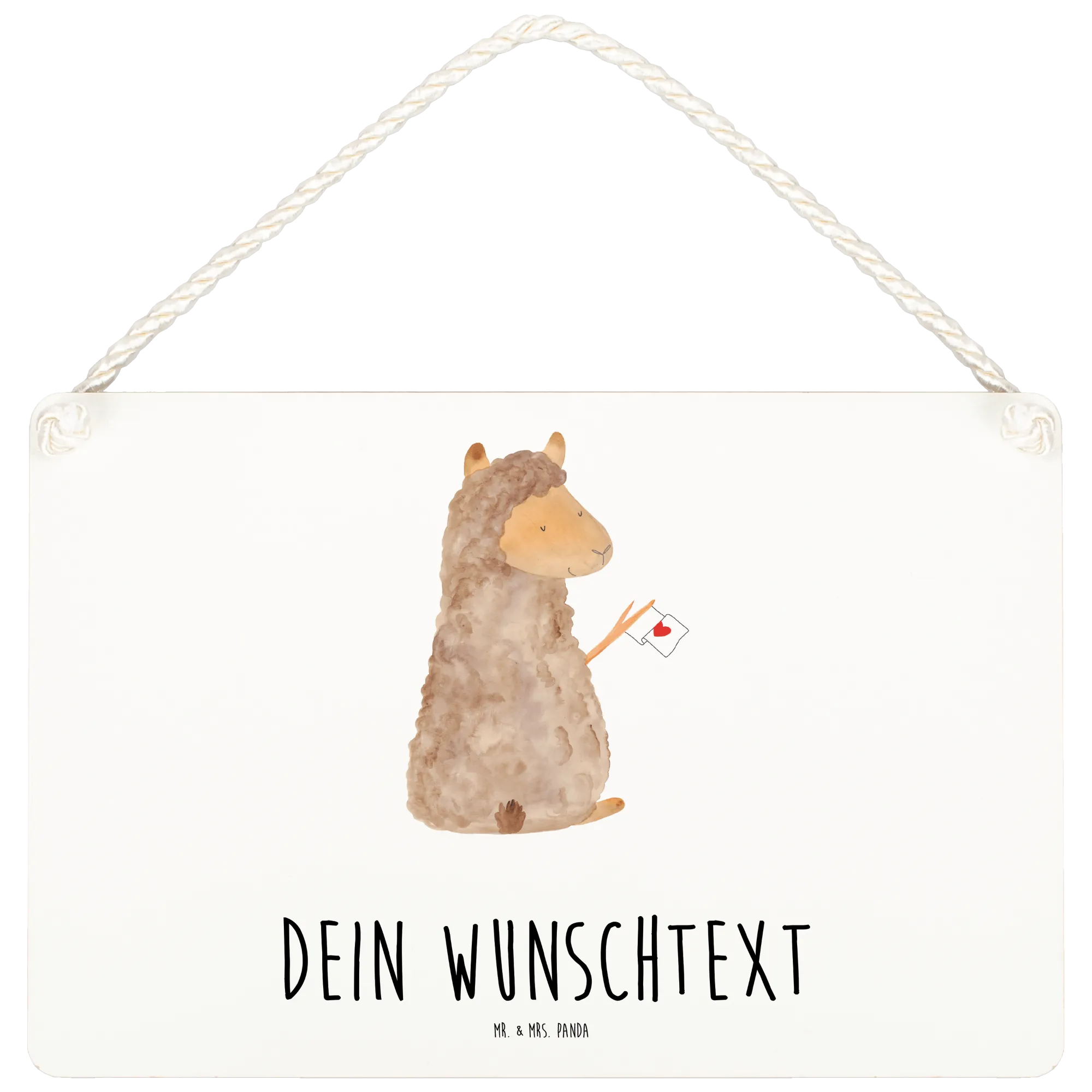 Personalisiertes Deko Schild Alpaka Fahne - DIN A6 - Weiß