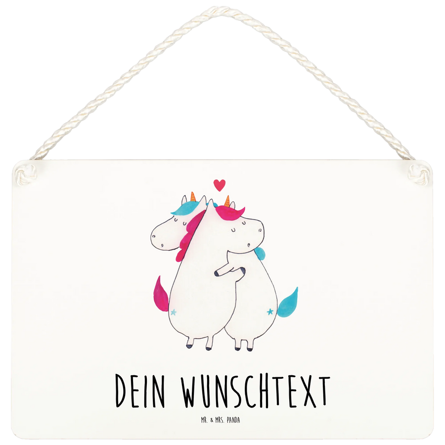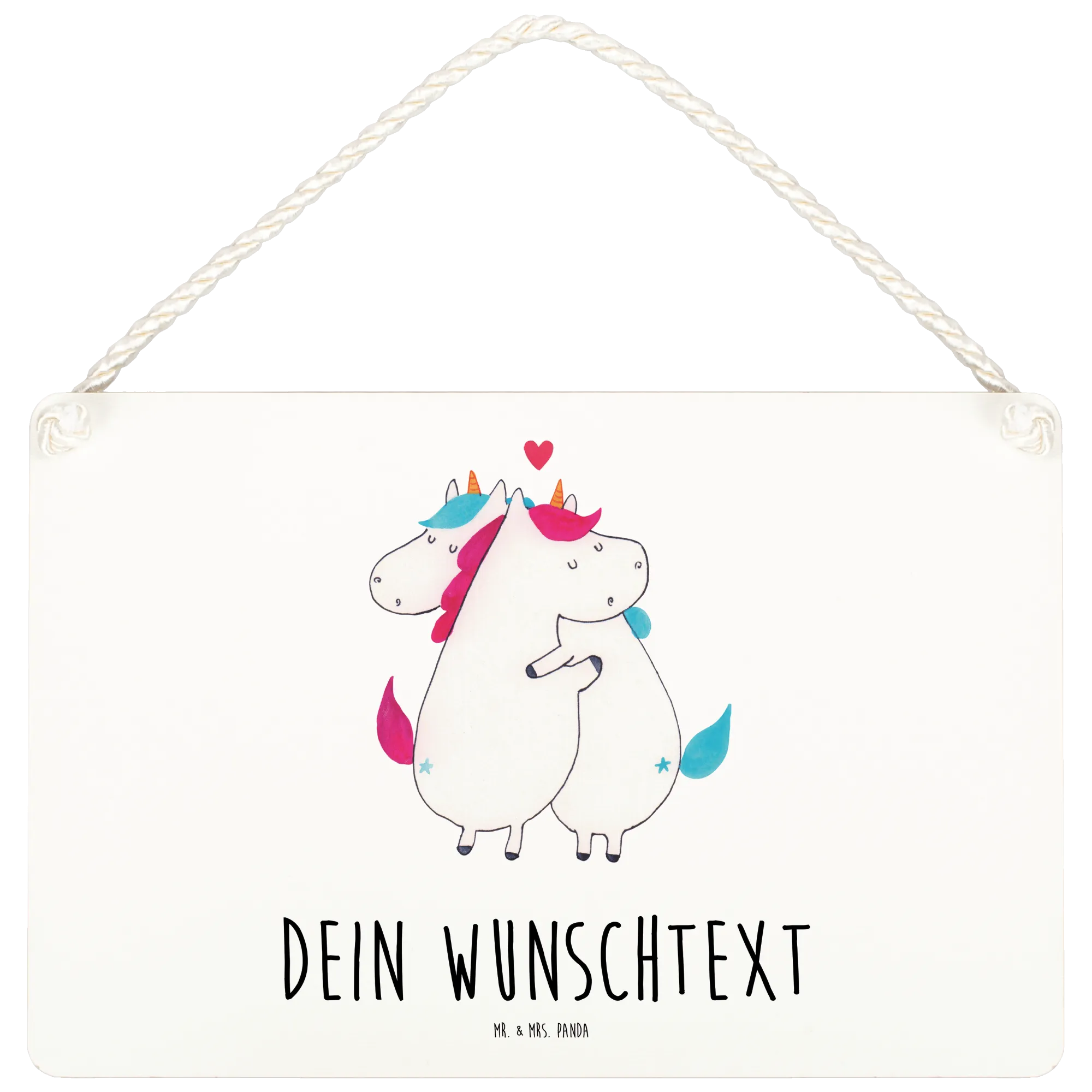 Die charmanten Einhörner, die sich fest umarmen, symbolisieren die Liebe und Geborgenheit, die wir unseren besonderen Menschen vermitteln möchten. Ob zum Valentinstag, zu einem Jubiläum oder einfach nur zwischendurch - dieses Deko Schild ist ein ideales Geschenk für Paare, beste Freunde oder Familienmitglieder. Du kannst das Schild sogar mit einem Wunschnamen personalisieren, um es noch individueller zu gestalten!
