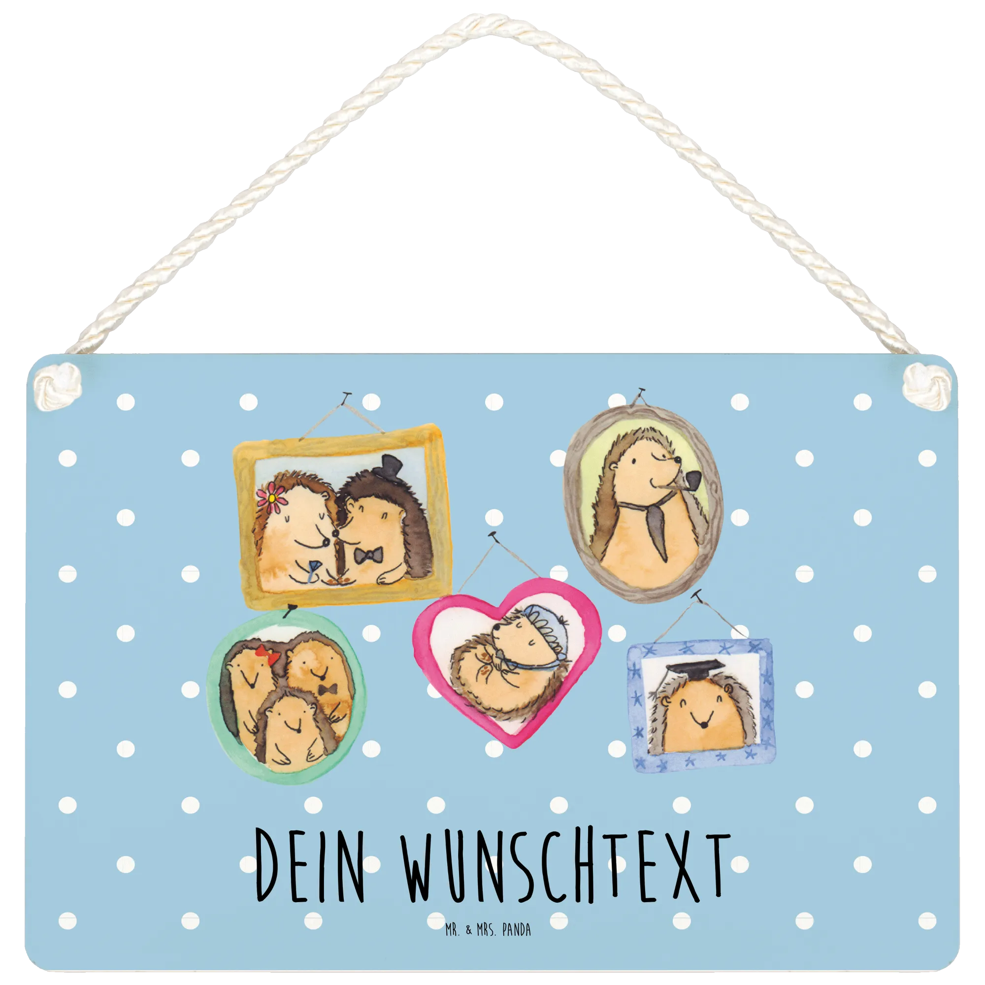 Das personalisierte Deko Schild mit dem süßen Igel-Motiv aus der Familienkollektion von Mr. & Mrs. Panda ist das perfekte Geschenk für all jene, die Familie und Zusammenhalt schätzen.