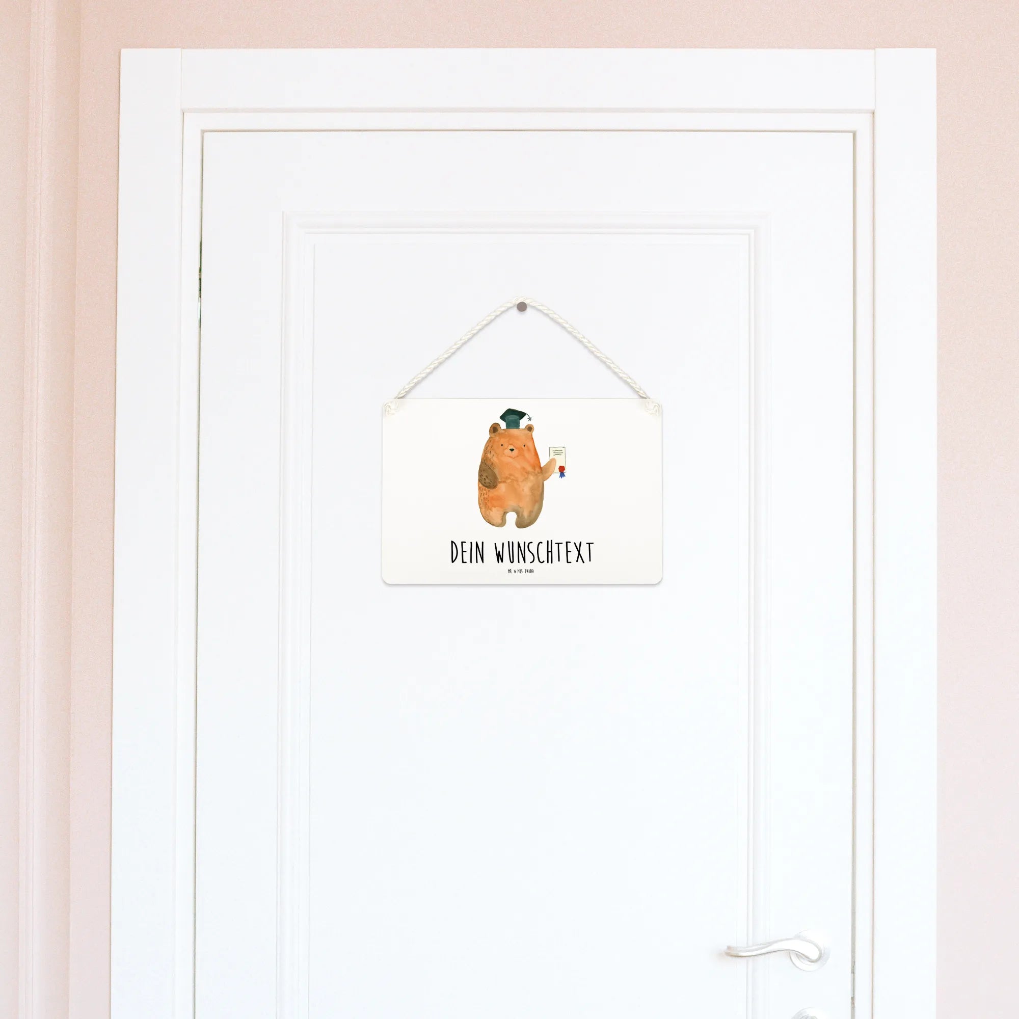 Personalisiertes Deko Schild Prüfungsbär - DIN A6 - Weiß