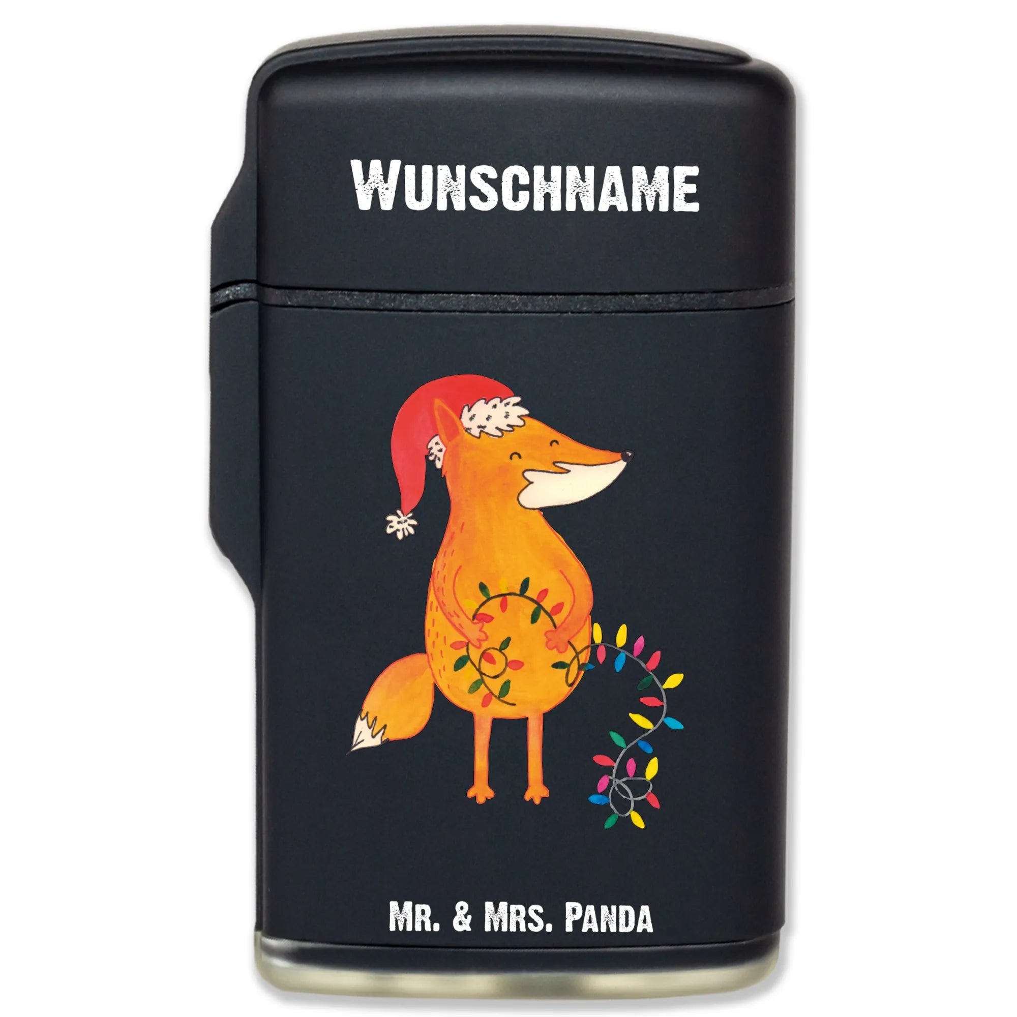 Das personalisierte Feuerzeug mit Fuchs-Motiv aus unserer Winter Kollektion von Mr. & Mrs. Panda ist das perfekte Geschenk für alle, die die Weihnachtszeit lieben. Mit einem freudig wirkenden Fuchs in einer weihnachtlichen Kappe, der eine Lichterkette mit bunten Lämpchen hält, bringt dieses Feuerzeug Freude in jede Adventszeit.