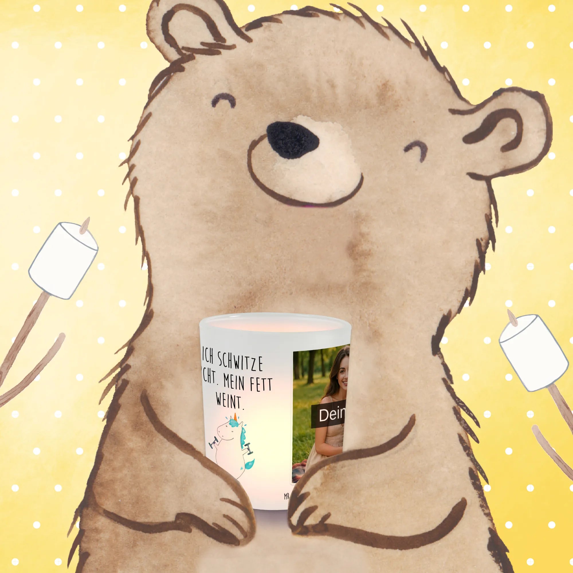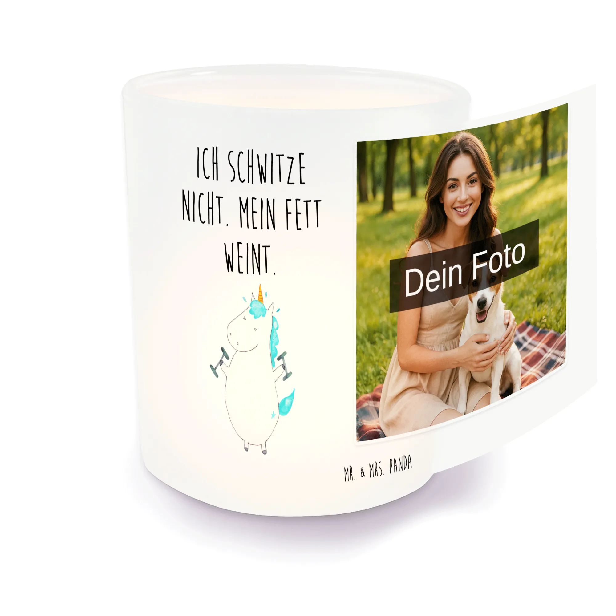 Personalisiertes Foto Windlicht Einhorn Fitness – Mr. & Mrs. Panda