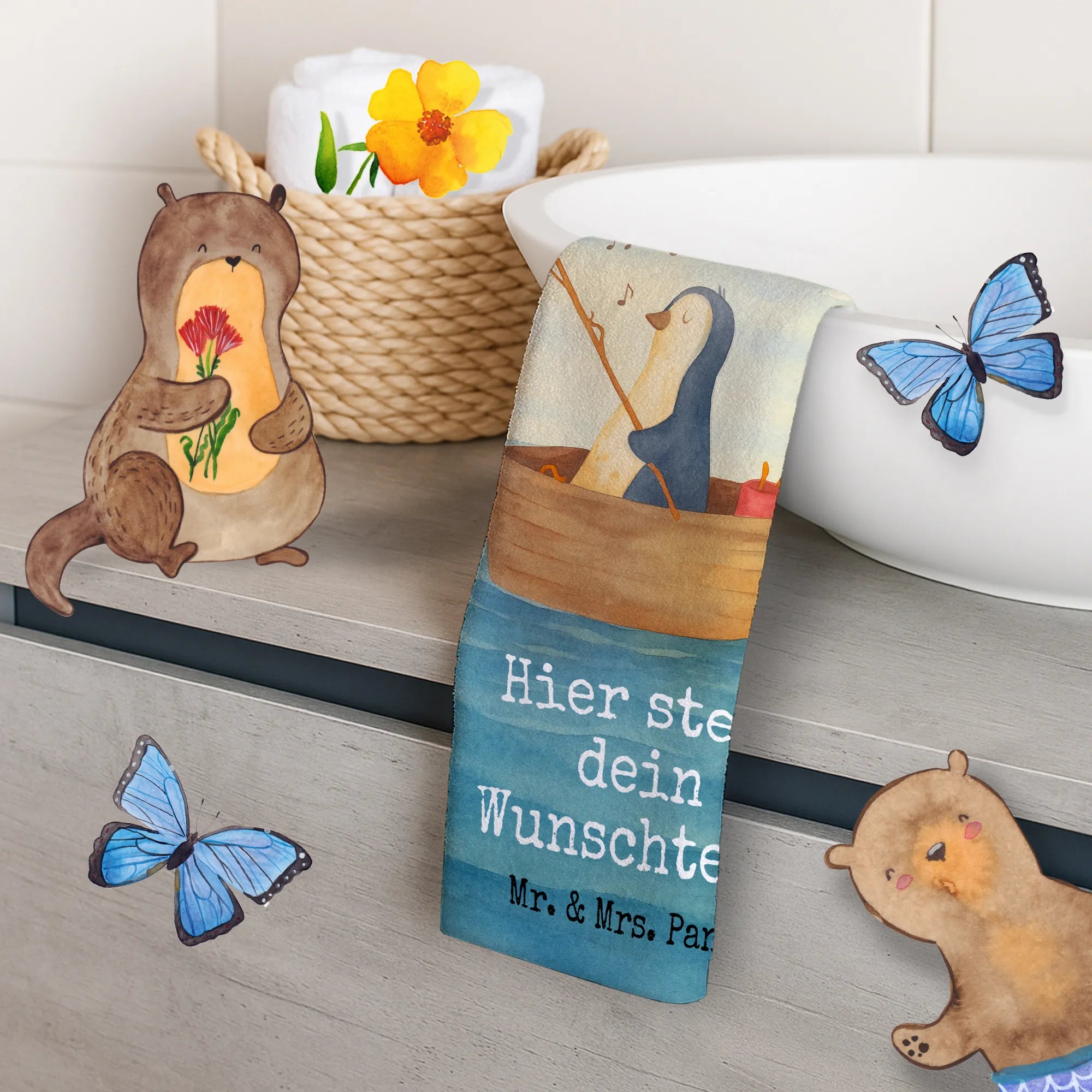 Personalisiertes Gästehandtuch Pinguin Angelboot Design