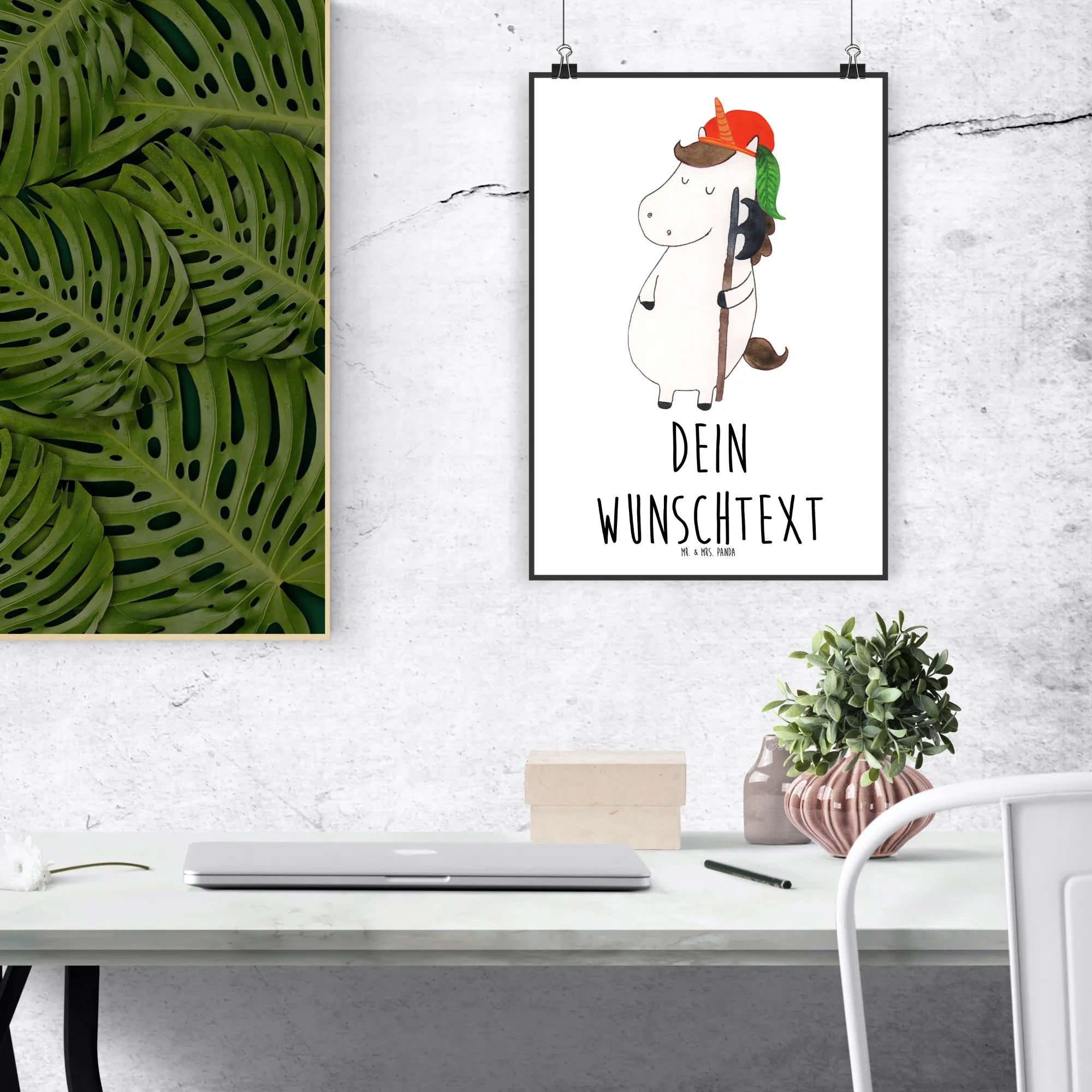 Das personalisierte Poster Einhorn Bube aus der zauberhaften Einhorn-Kollektion von Mr. & Mrs. Panda ist der perfekte Begleiter für jedes Kinderzimmer! Mit einem liebevoll handgezeichneten Einhorn, das einen Helm trägt und in der Hand einen Stock hält, versprüht dieses Poster Charme und Abenteuerlust.