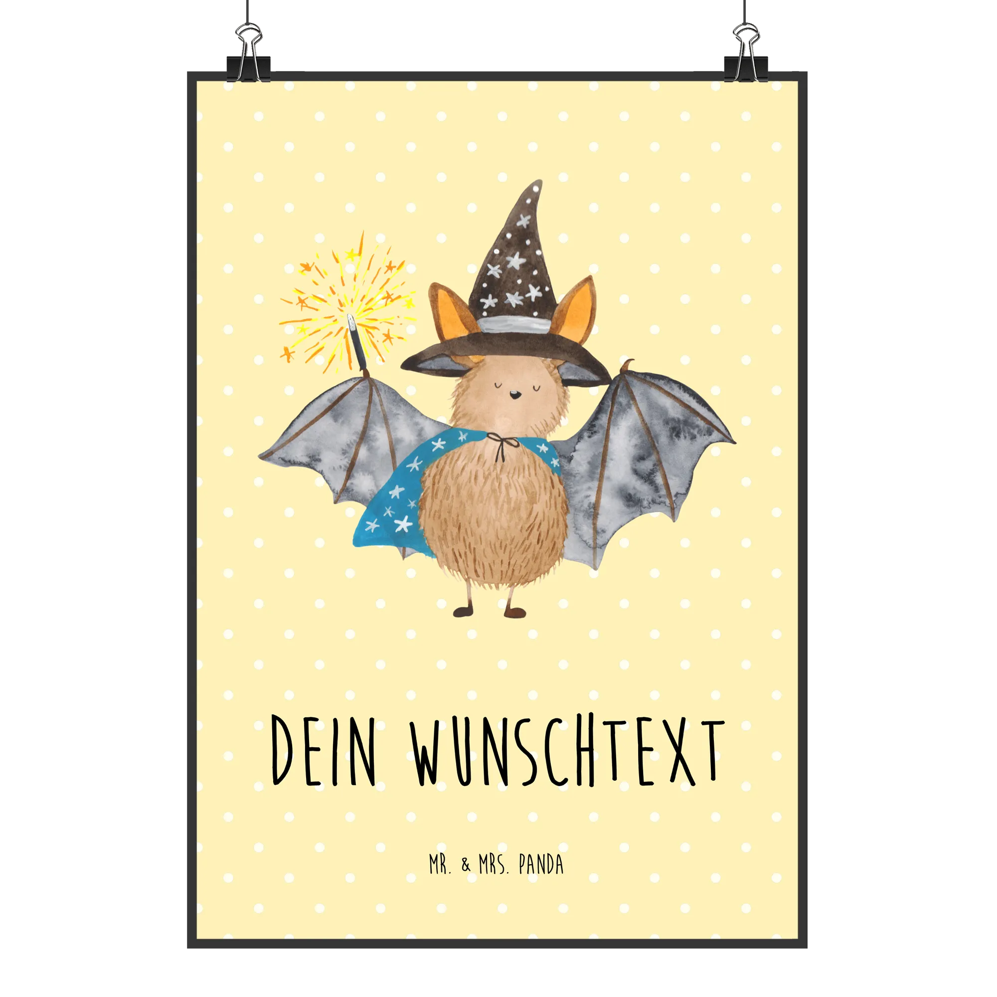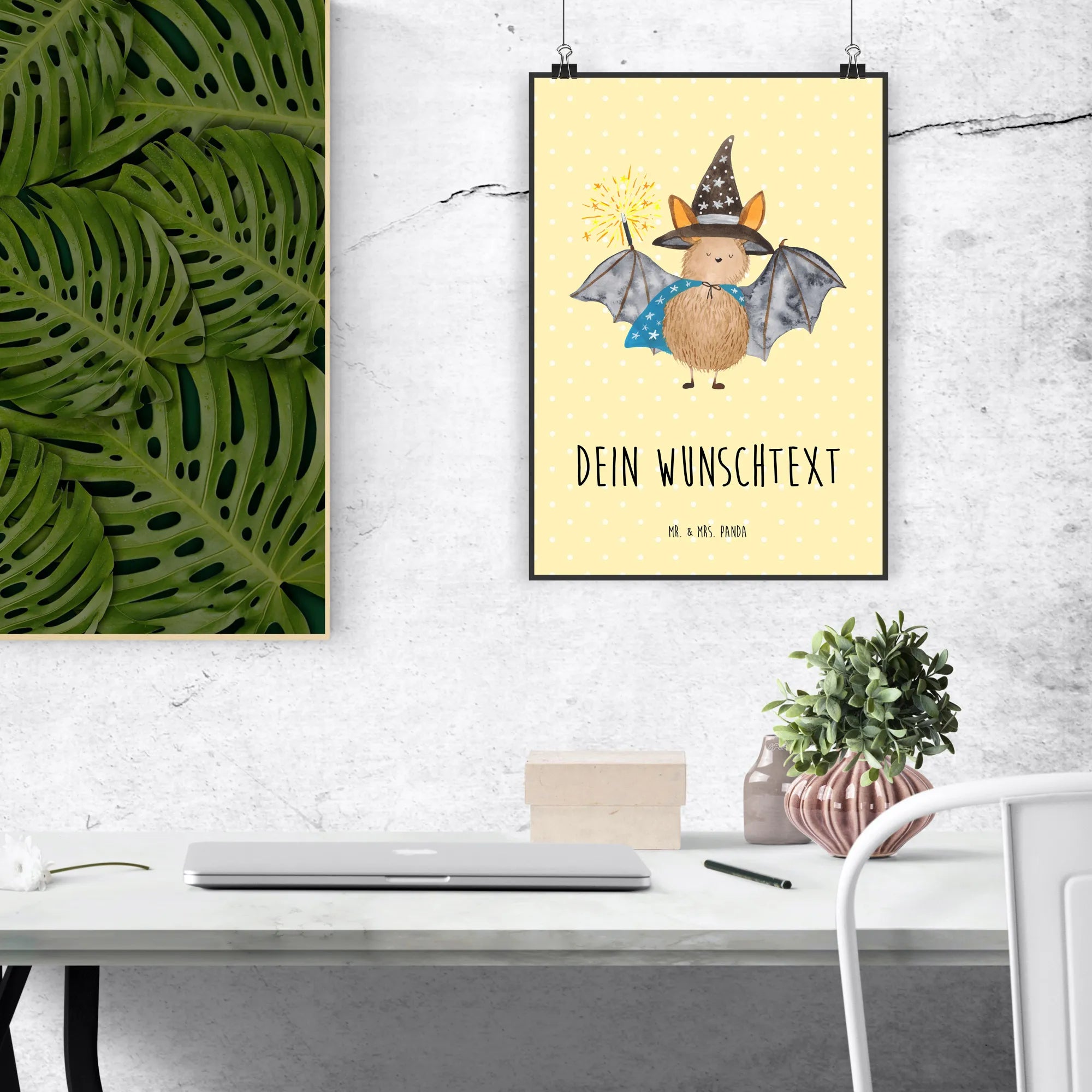 Das personalisierte Poster "Fledermaus Zauberer" von Mr. & Mrs. Panda ist das perfekte Geschenk für alle, die Magie und fröhliche Designs lieben.