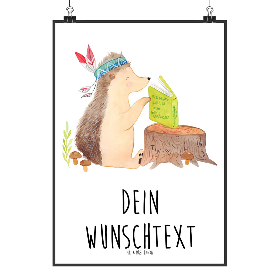 Das personalisierte Poster mit dem süßen Igel Indianer aus der Waldtiere Kollektion von Mr. & Mrs. Panda ist das perfekte Geschenk für jung und alt! Dieses liebevoll gestaltete Poster bringt einen Hauch von Abenteuer und Natur in jedes Zuhause. Der Igel mit seinem farbenfrohen Federschmuck sitzt auf einem Baumstumpf und liest ein aufregendes Buch über Abenteuer - eine charmante Szene, die sowohl Kinder als auch Erwachsene begeistert.