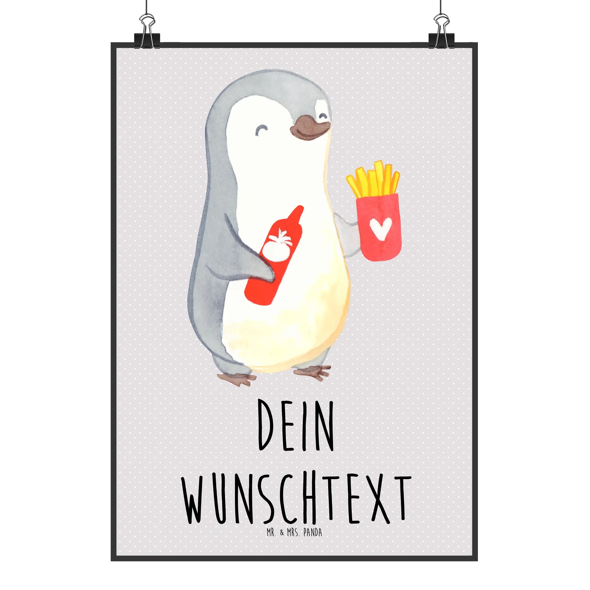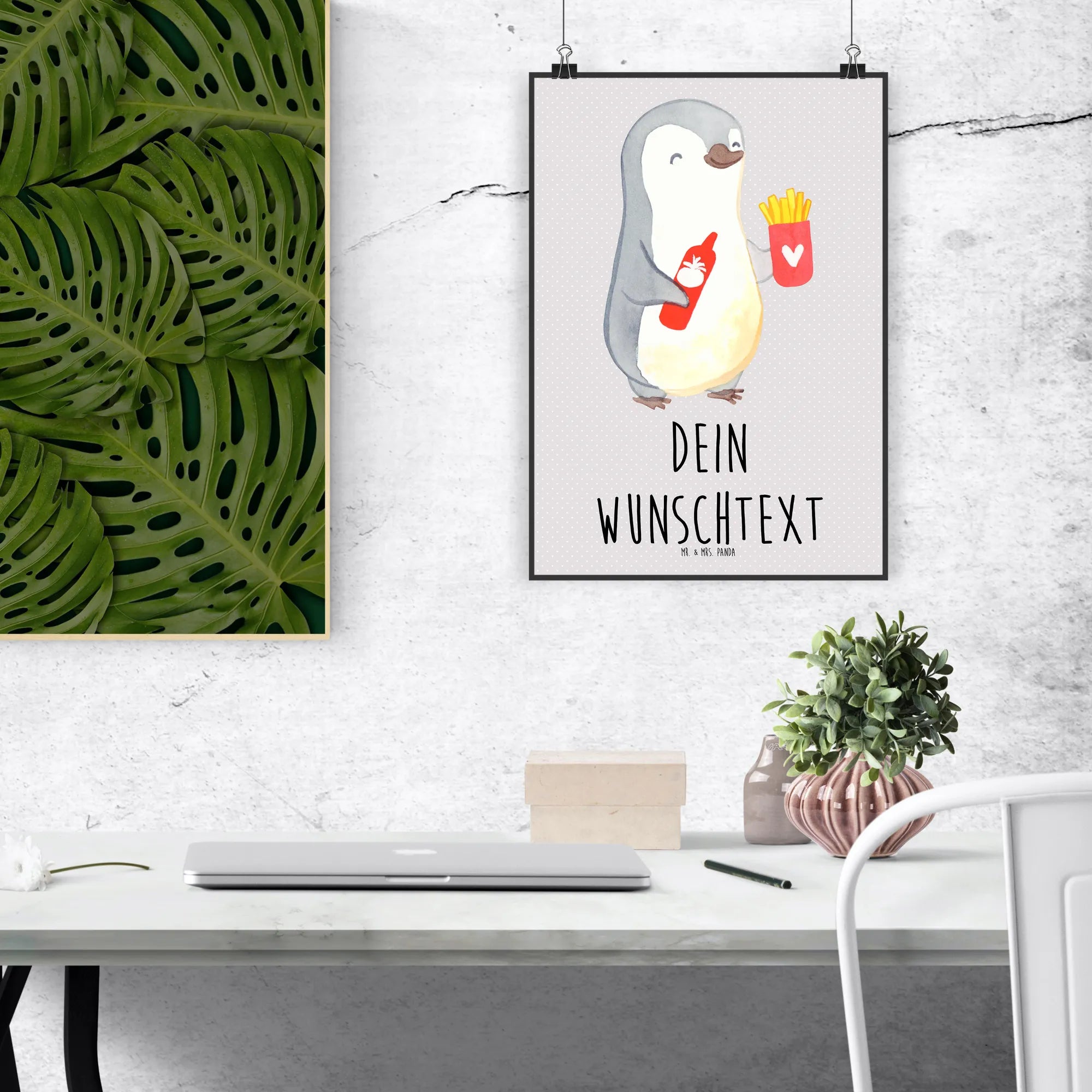 Das personalisierte Poster mit dem fröhlichen Pinguin Pommes ist das perfekte Geschenk für deine Liebsten. Egal ob für den Valentinstag, den Hochzeitstag oder einfach als süße Überraschung – mit diesem Poster verzauberst du garantiert jeden. Der glückliche Pinguin, der in seinen Flügeln eine Portion Pommes frites und eine Flasche Ketchup hält, strahlt pure Freude aus.