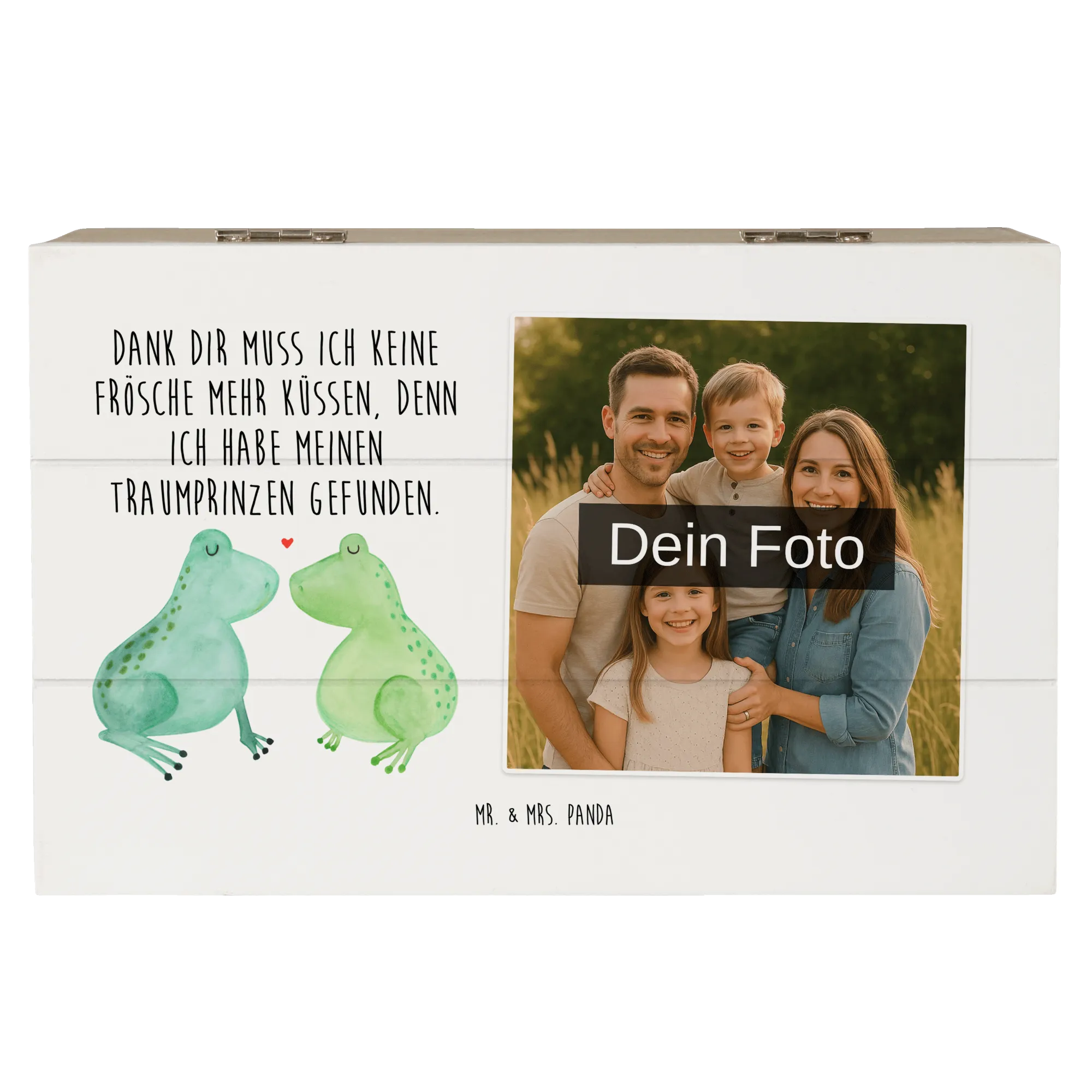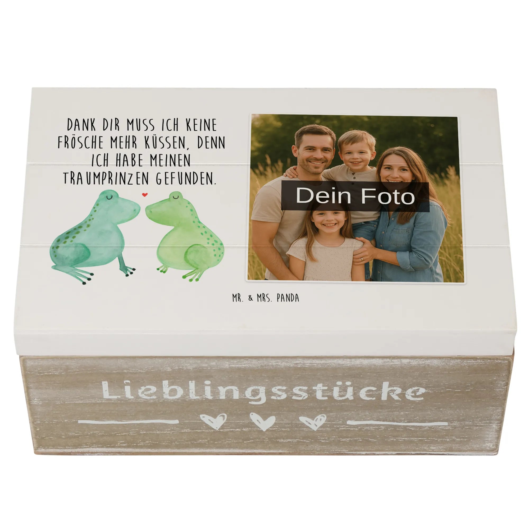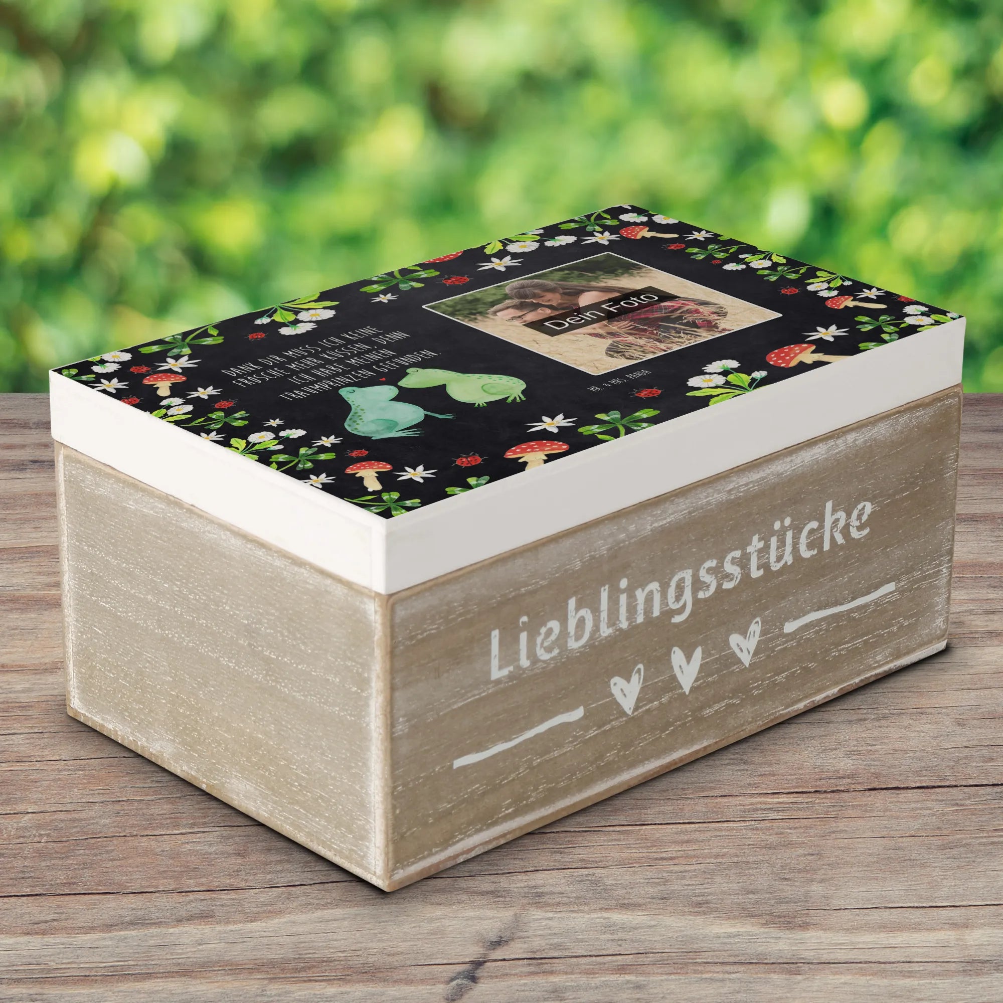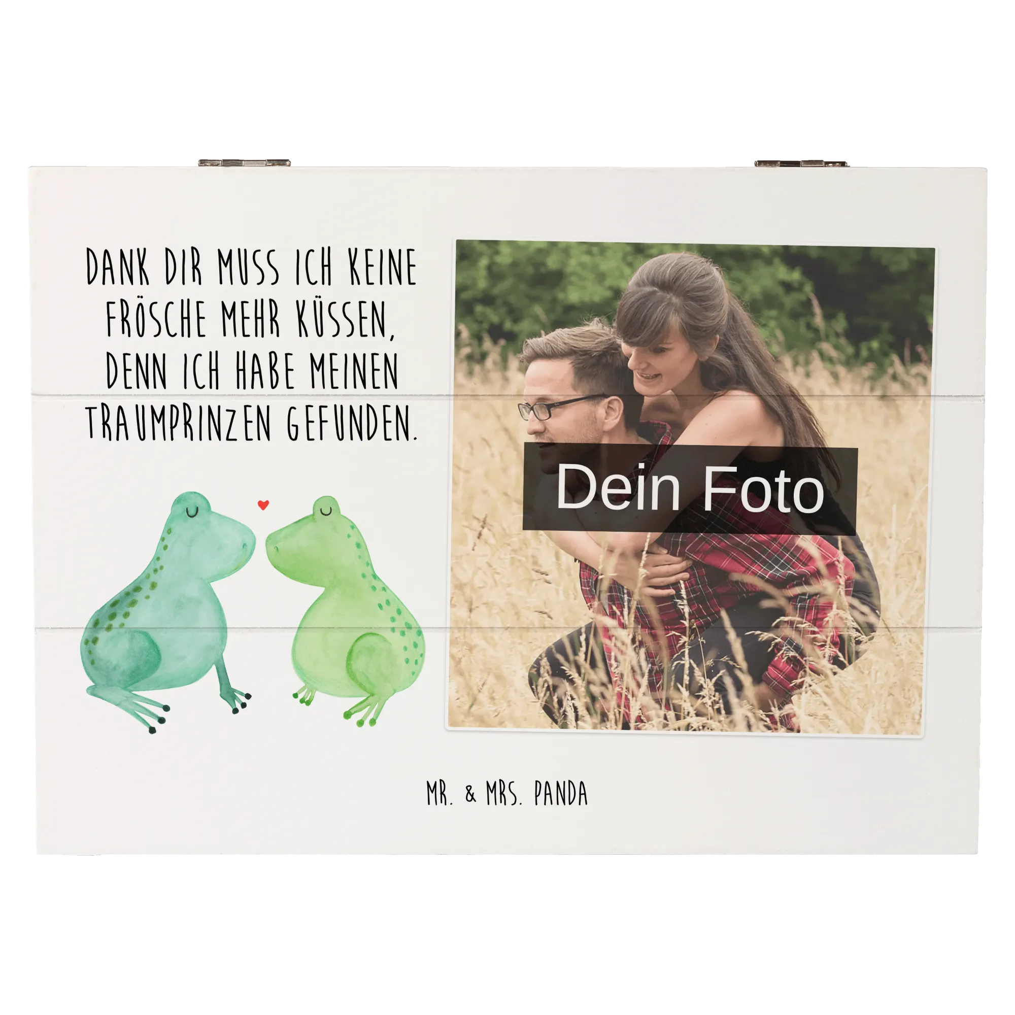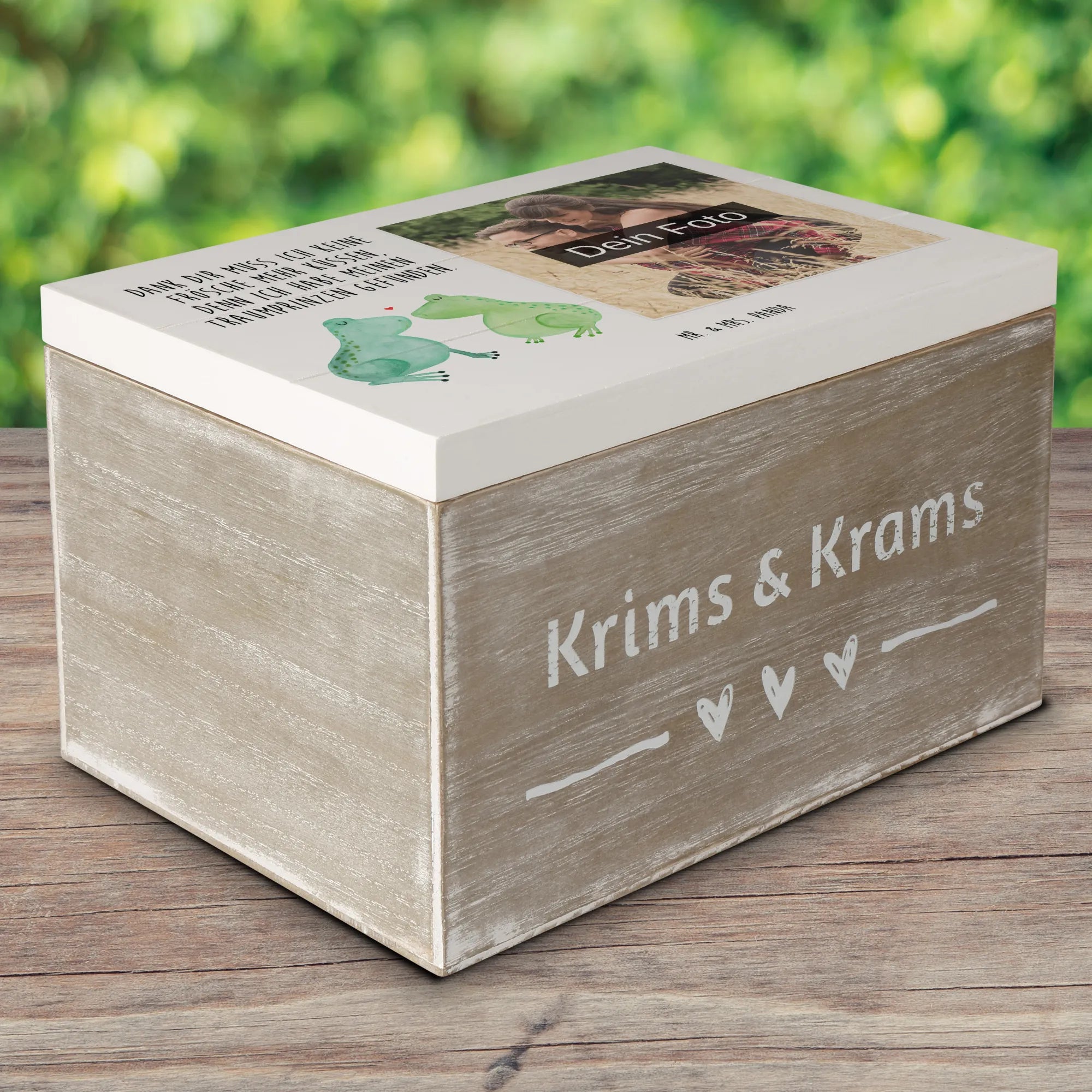 Personalizowana drewniana skrzynka na zdjęcia Żabia miłość - 22 x 15 cm - Biały