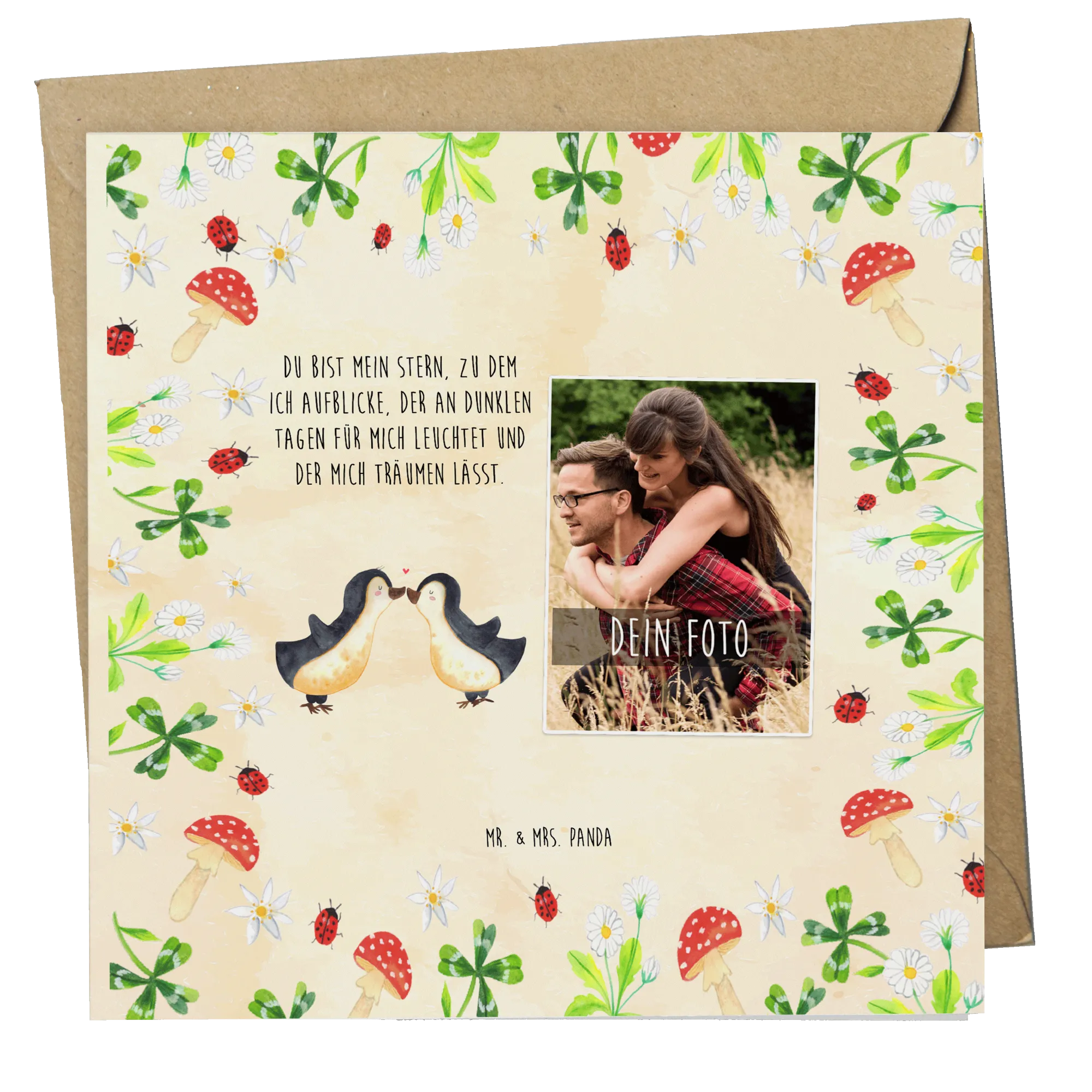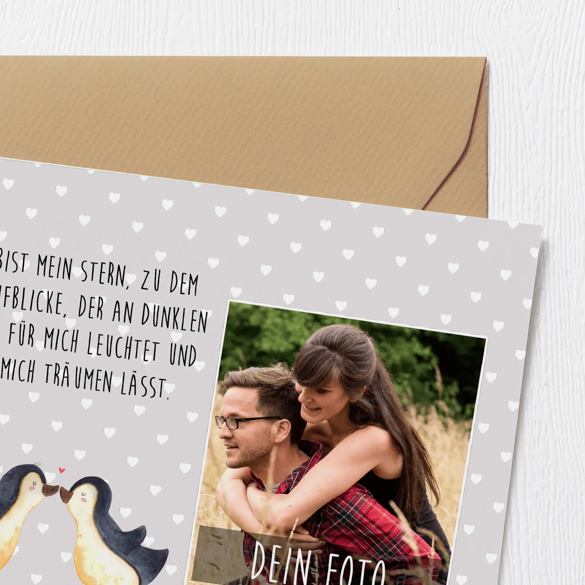 Personalizowana karta Deluxe ze zdjęciem Pingwin Miłość - Tablica kredowa