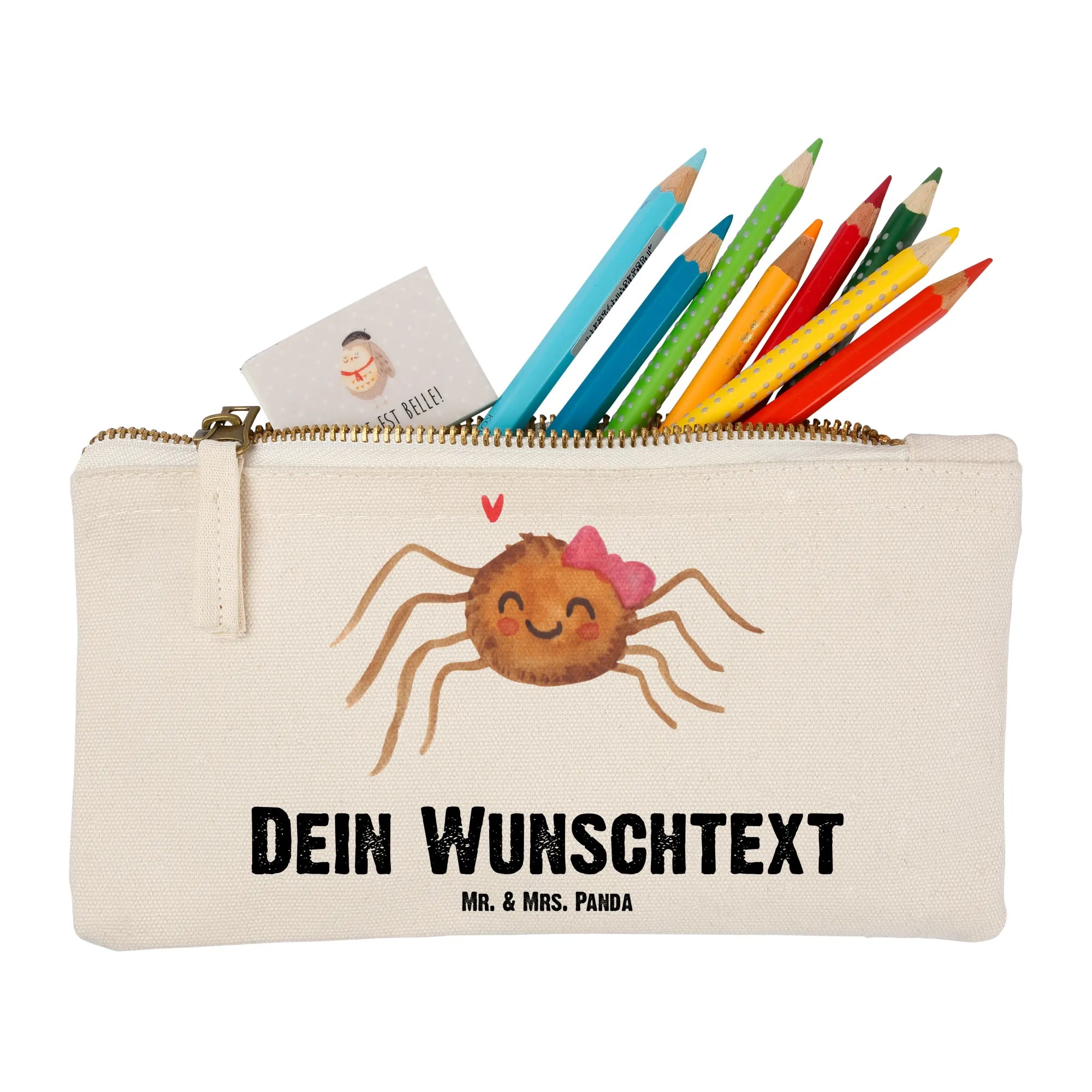 Du bist auf der Suche nach dem perfekten Geschenk für dich oder deine Liebsten? Dann ist die personalisierte Schminktasche mit dem süßen Motiv "Spinne Agathe Freude" aus der Kollektion von Mr. & Mrs. Panda genau das Richtige! Mit ihrer lebendigen Darstellung der zauberhaften Spinne Agathe, die mit einem kleinen Schleifchen und einem Herzchen verziert ist, bringt sie Freude in jeden Alltag.