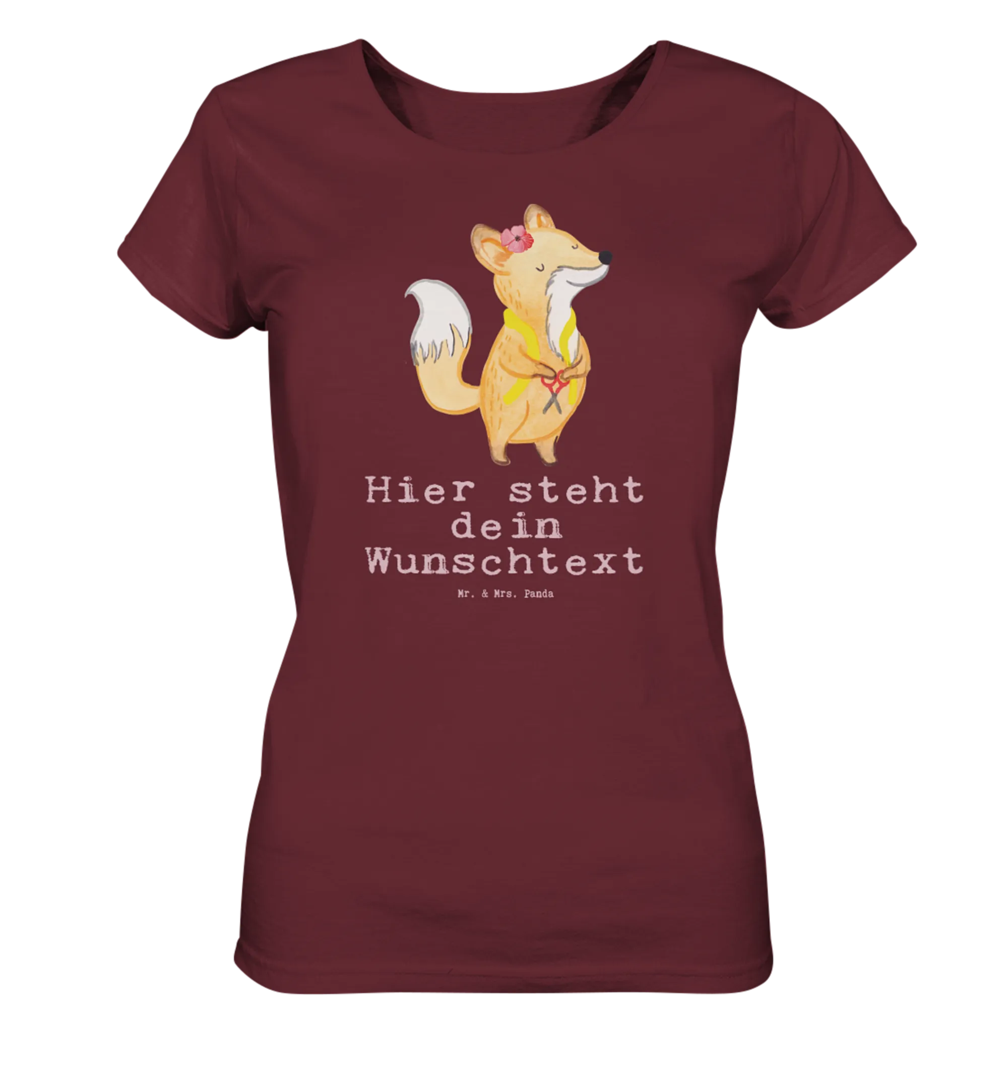 Das personalisierte Shirt Damen "Schneiderin mit Herz" aus der Kollektion Berufe ist das perfekte Geschenk für alle, die das Schneiderhandwerk lieben. Mit seinem liebevollen Design, das einen süßen Fuchs zeigt, der stolz mit einem Maßband und einer Schere posiert, wird dieses T-Shirt bei Schneiderinnen und Schneider eine große Freude bereiten. Es eignet sich hervorragend für verschiedene Anlässe, sei es zum Berufsstart, zur Beförderung oder als Jubiläumsgeschenk.
