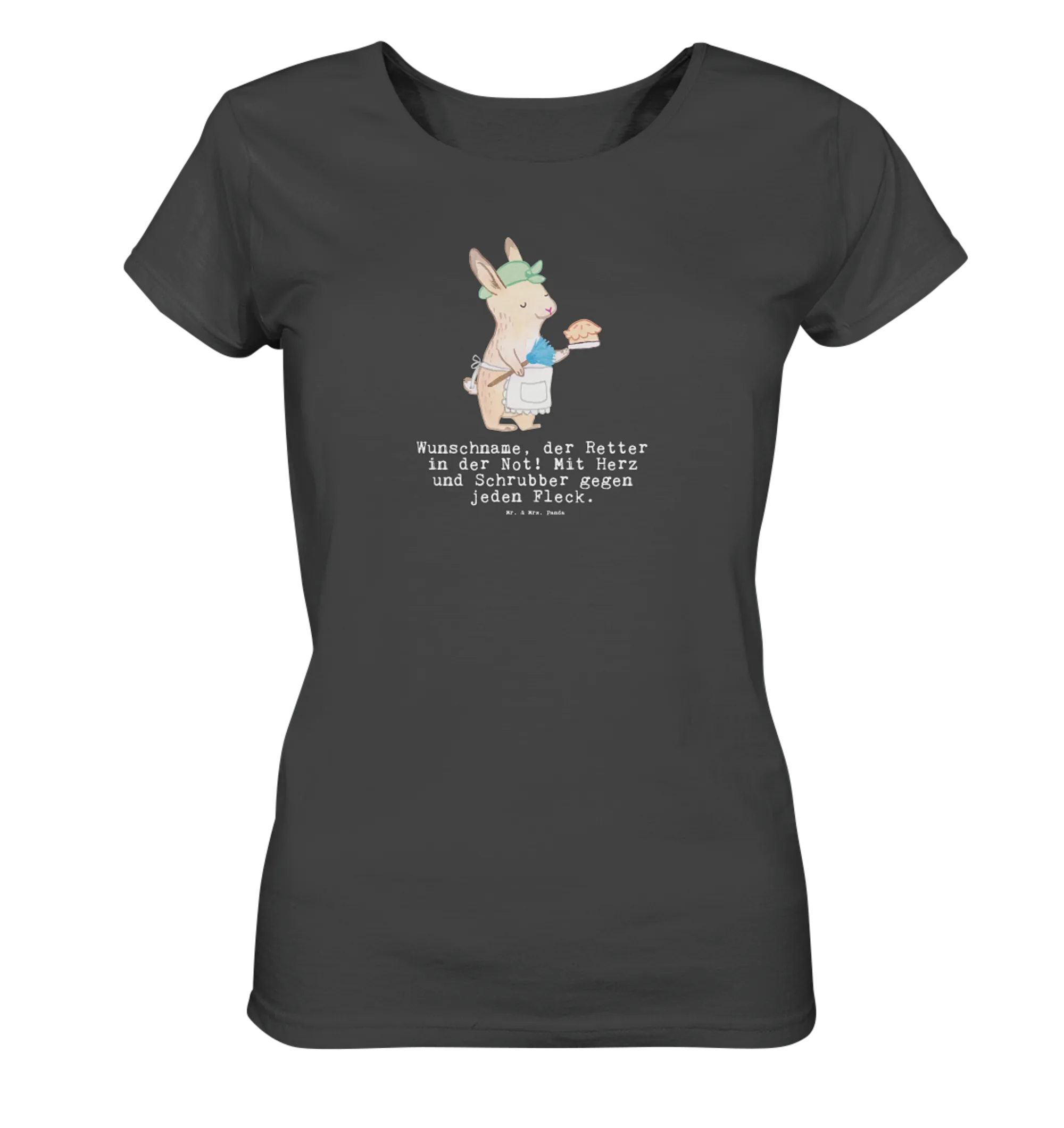 Der niedliche Hase in der Schürze mit einem Staubwedel in der Hand ist nicht nur ein Blickfang, sondern auch eine gelungene Hommage an alle Haushaltshilfen, die uns den Alltag erleichtern. Jedes Shirt wurde mit viel Liebe im kreativen Stil von Mr. & Mrs. Panda entworfen und besteht aus 100% Baumwolle, die nicht nur sehr angenehm zu tragen ist, sondern auch das Öko-Siegel trägt.