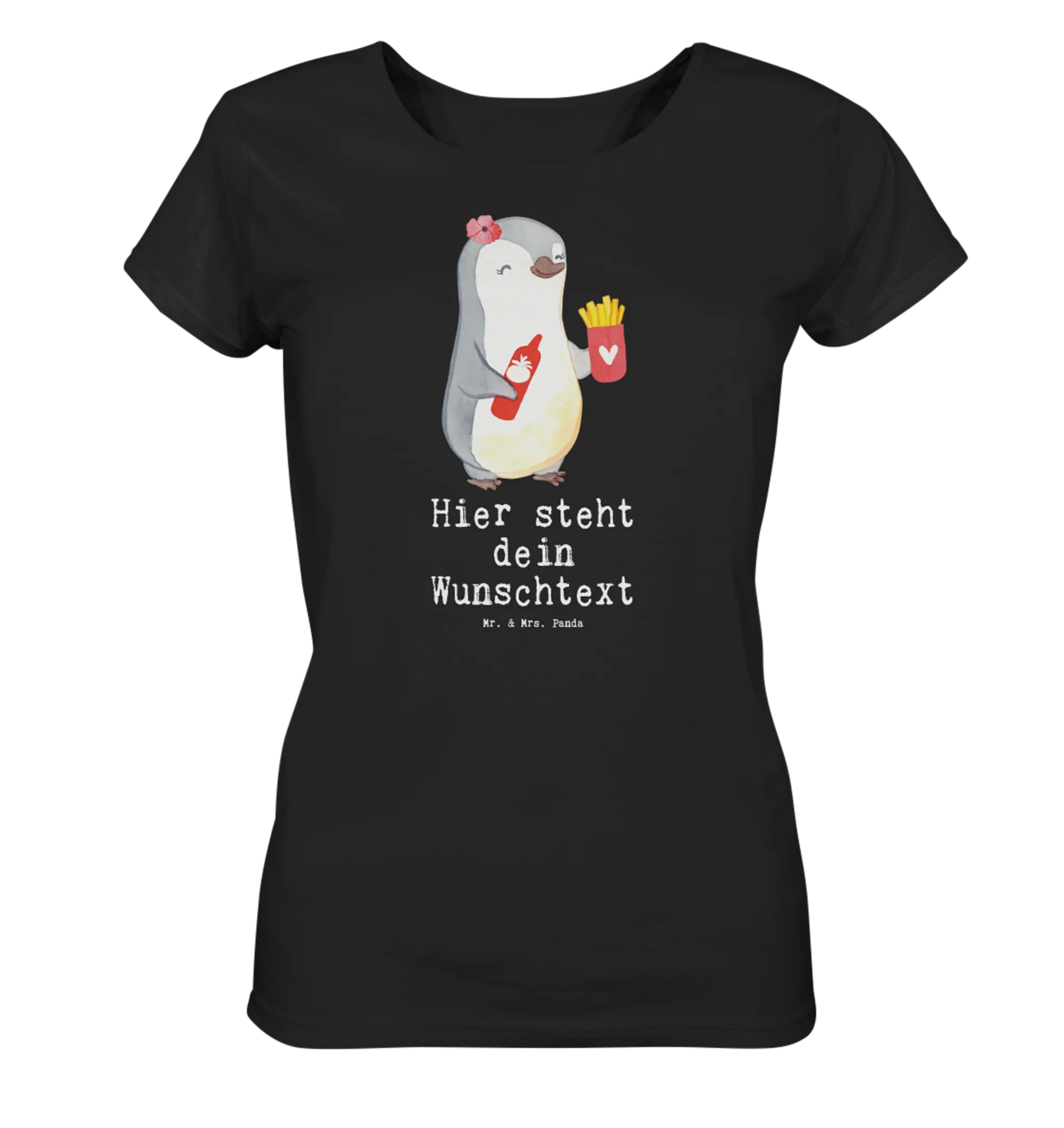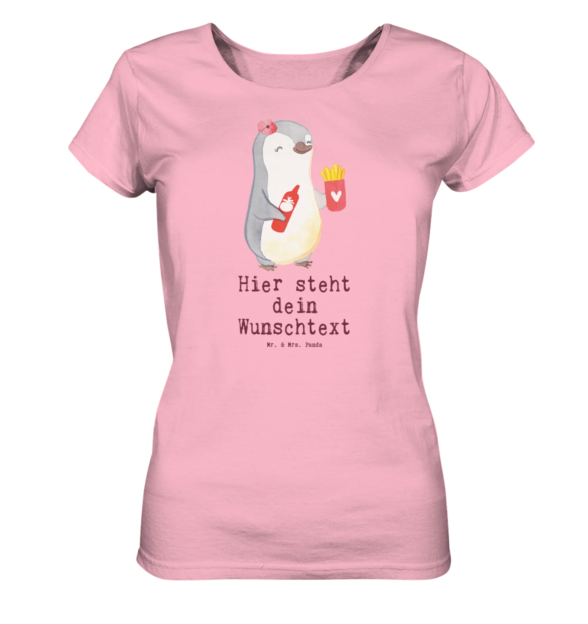 Das Personalisiertes Shirt Damen mit dem liebevollen Motiv 'Imbissbesitzerin mit Herz' aus der kreativen Berufe-Kollektion von Mr. & Mrs. Panda ist das perfekte Geschenk für alle, die nicht nur Pommes, sondern auch Leidenschaft verkaufen!
