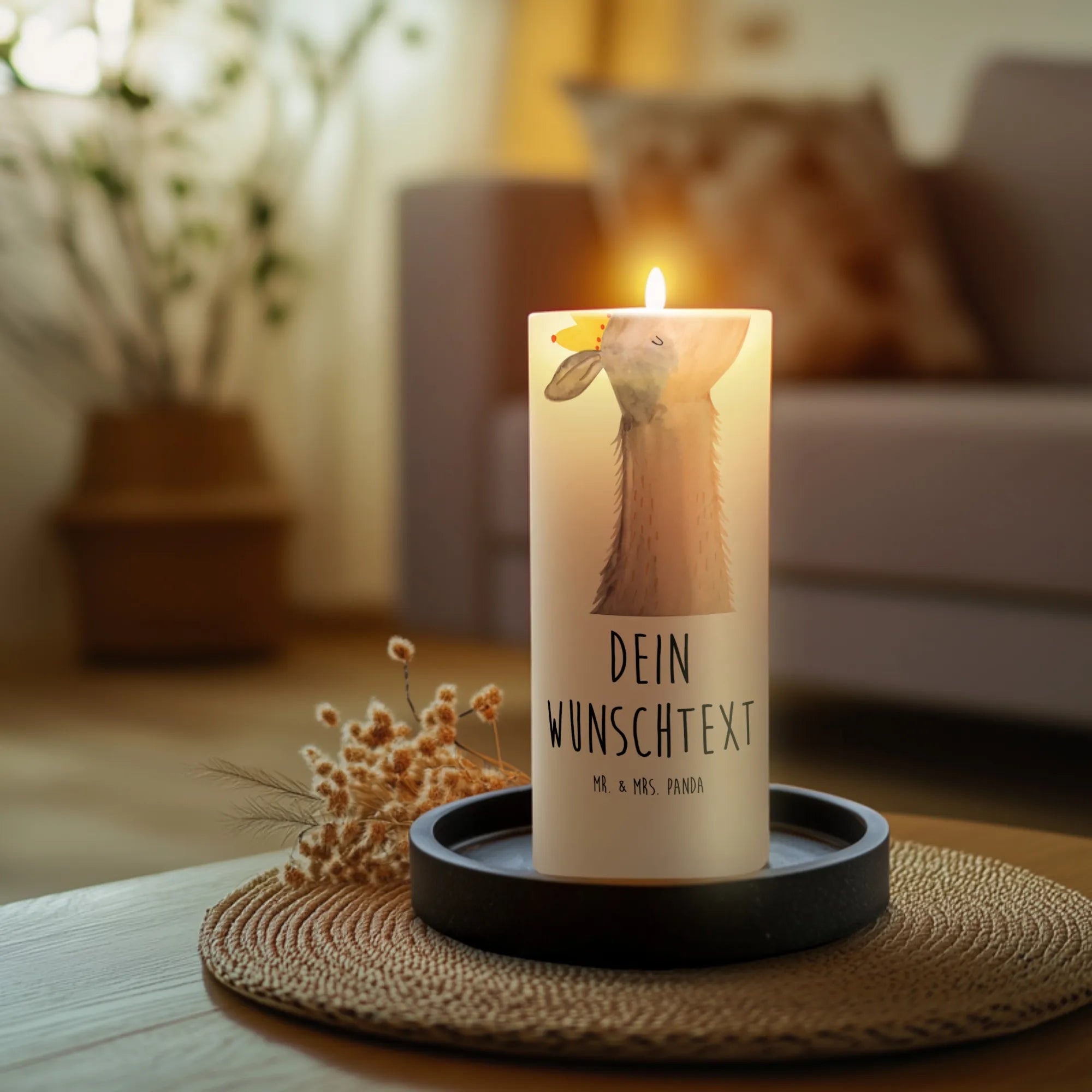 Mit einem süßen Lama mit Krone auf dem Kopf und dem liebevollen Slogan 'Man widerspricht dem Lama nicht' wird diese Kerze zum Highlight jeder Feier. Die Kerze ist personalisiert mit deinem Wunschnamen oder Wunschtext – damit wird sie zum ganz persönlichen Geschenk.