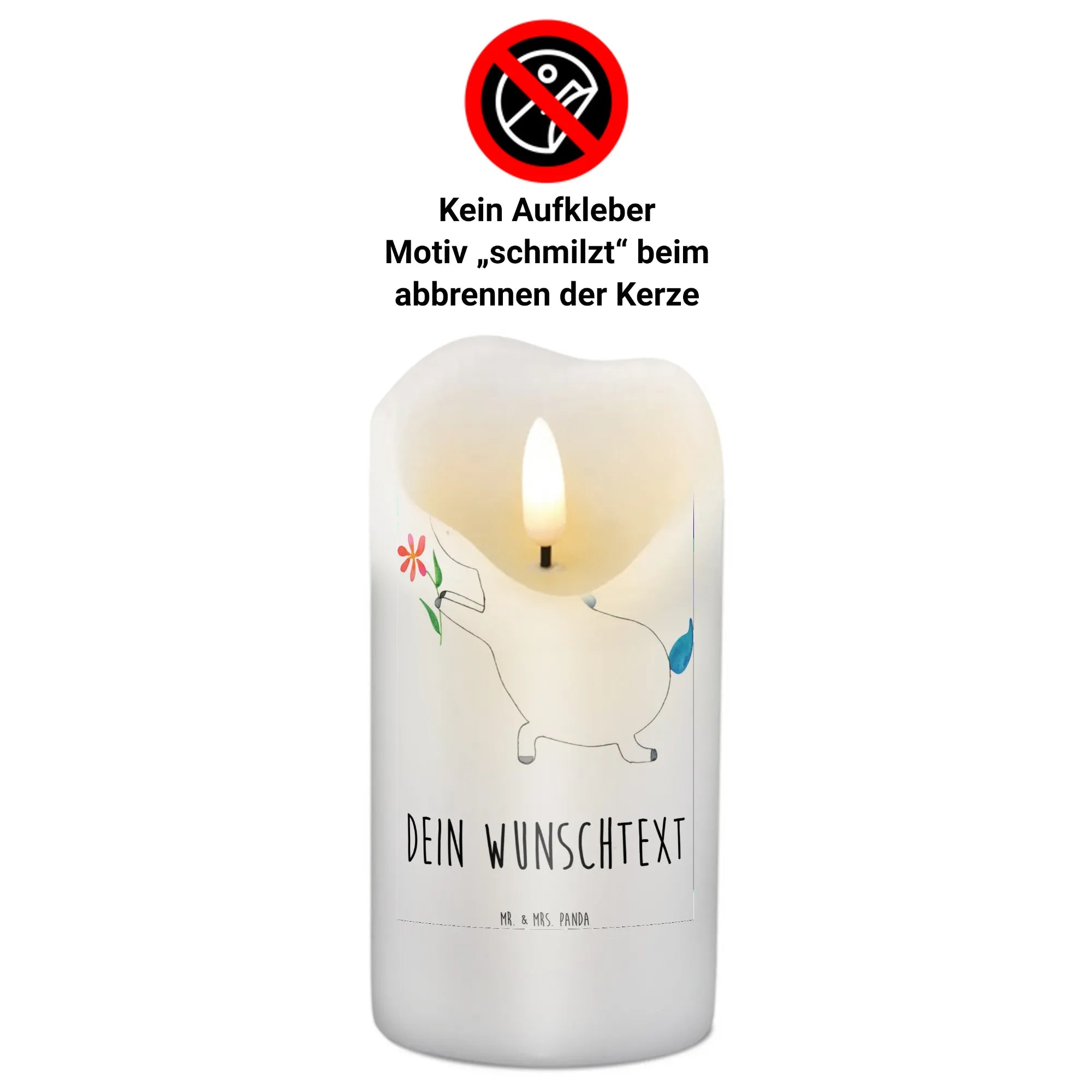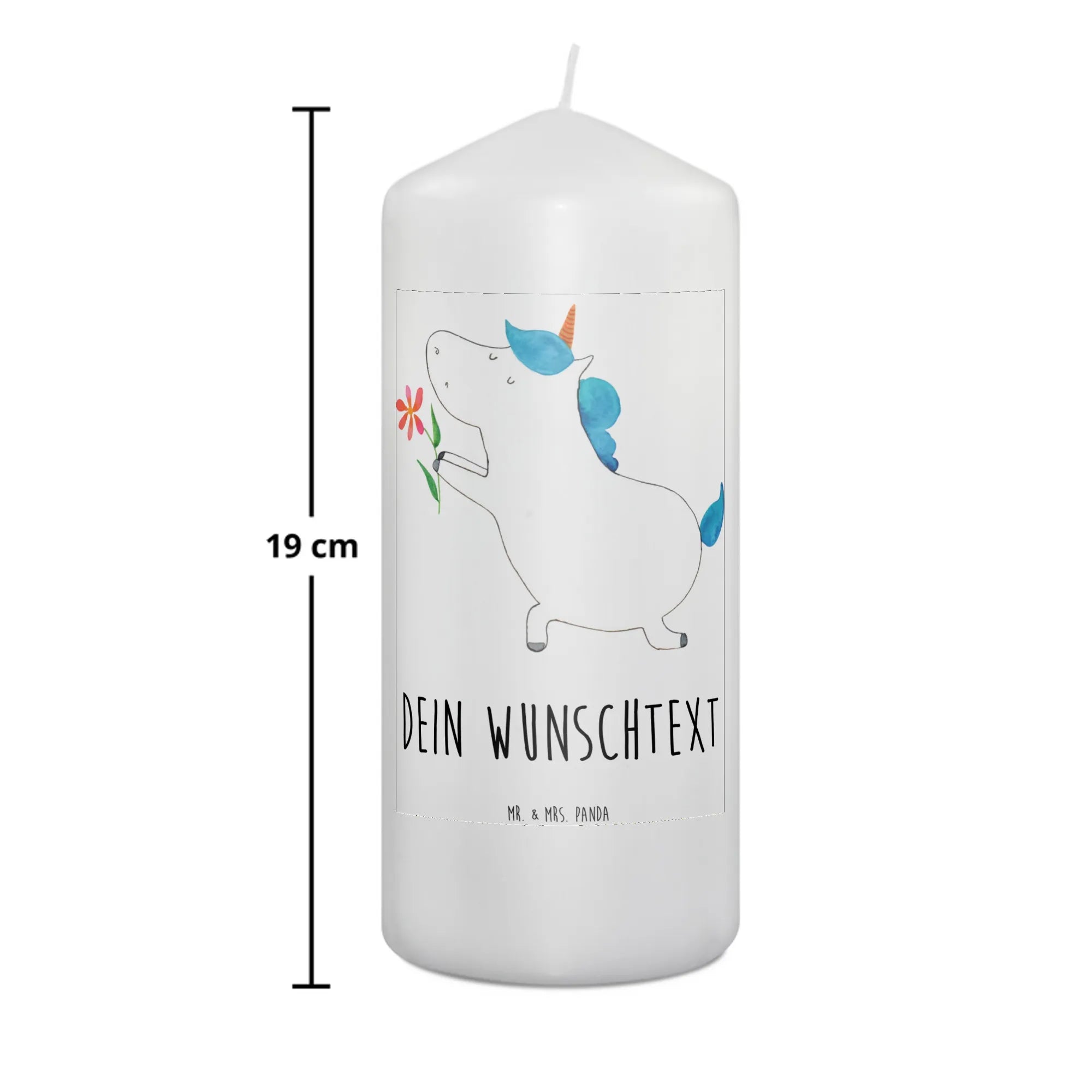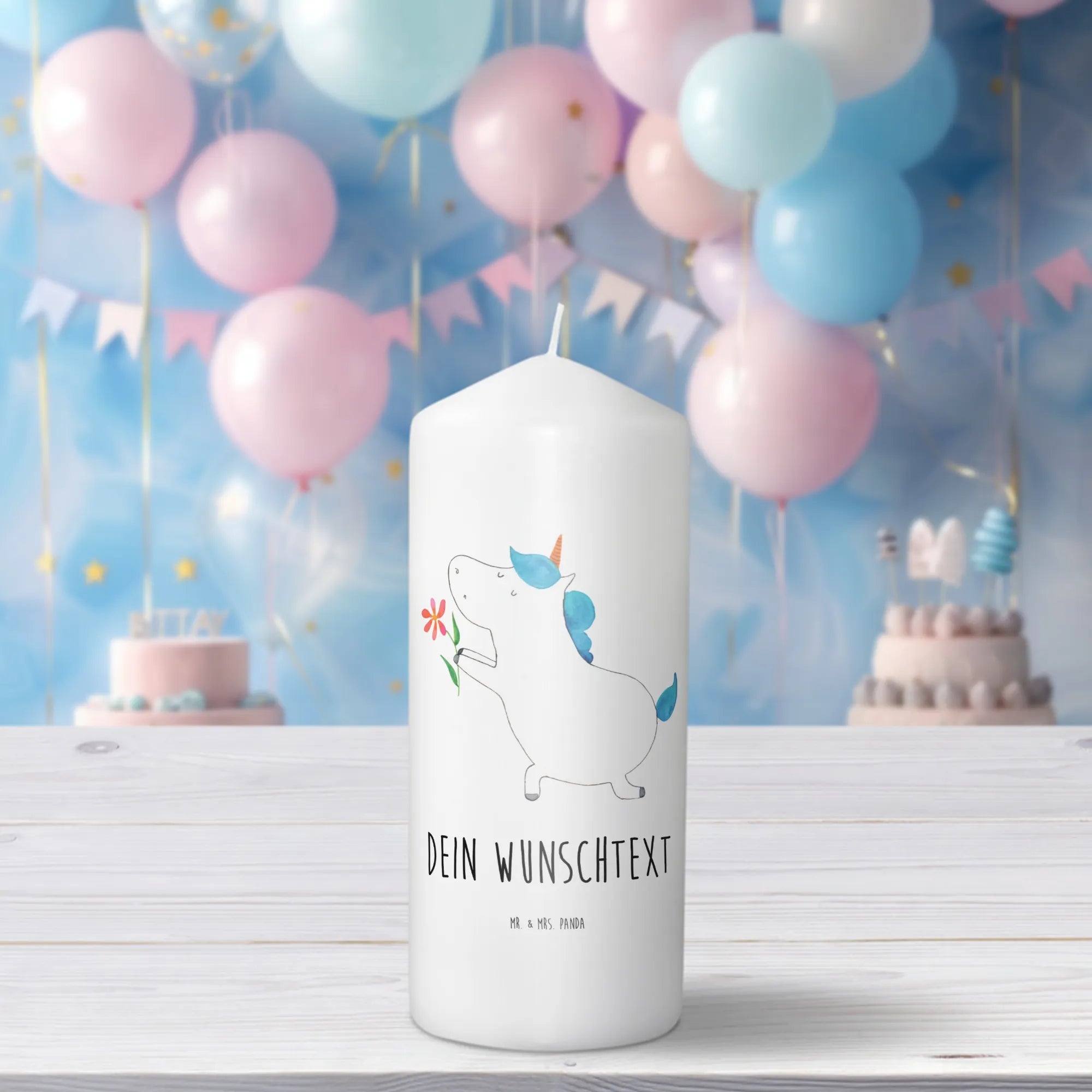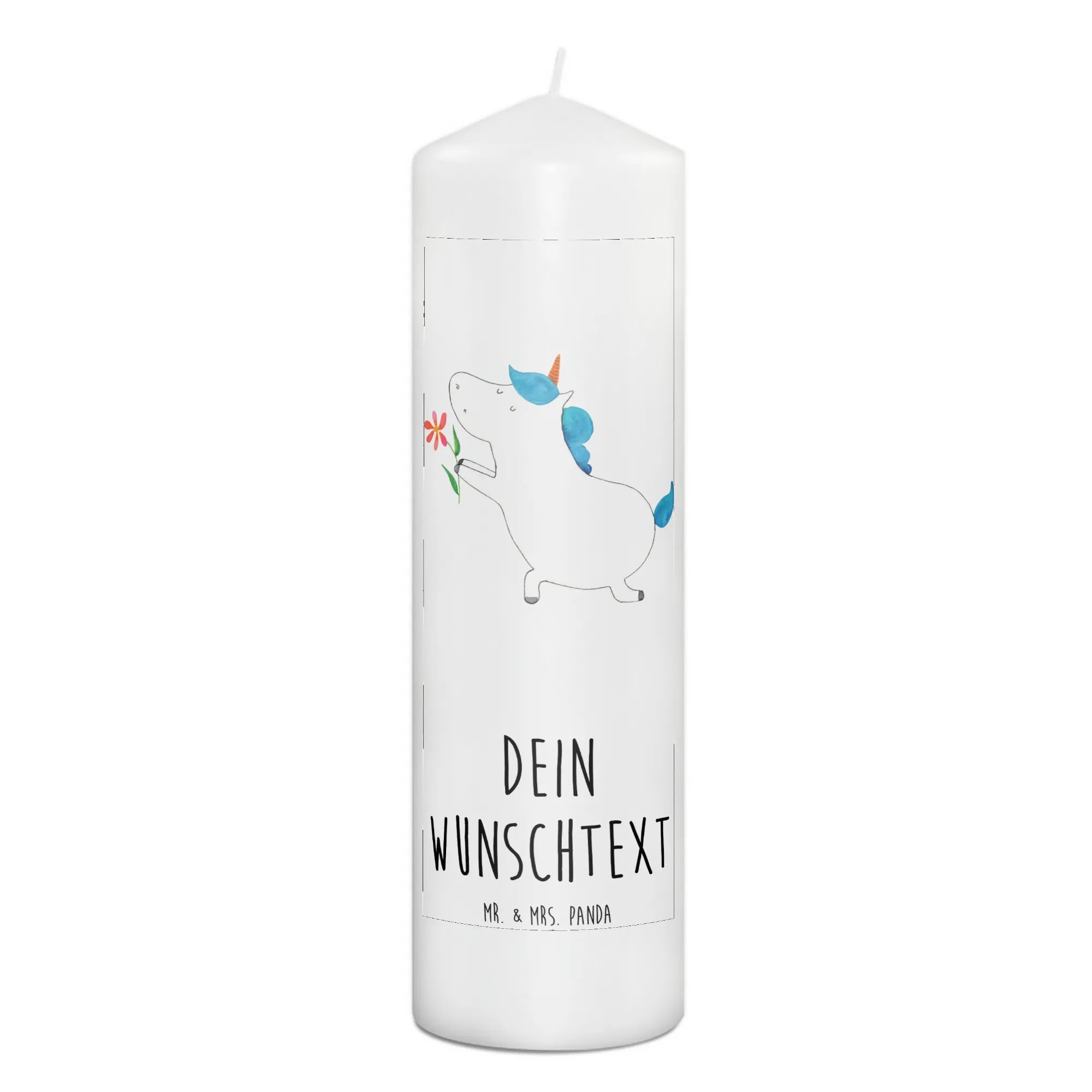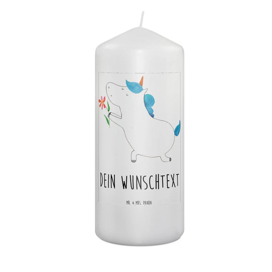 Verschenke ein Stück Liebe und Freude mit der personalisierten Kerze "Einhorn Blume" von Mr. & Mrs. Panda. Diese besondere Kerze bringt Lächeln, Freude und zauberhafte Momente in dein Leben und das deiner Liebsten!
