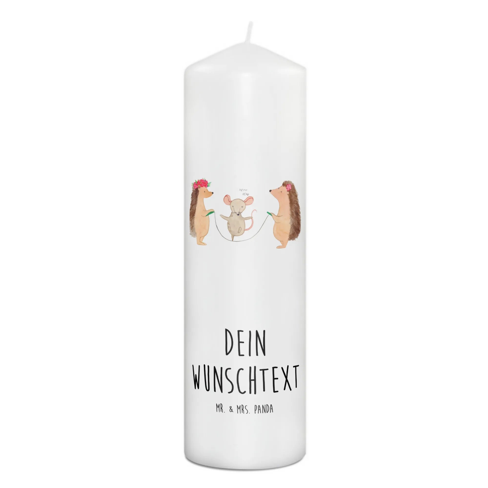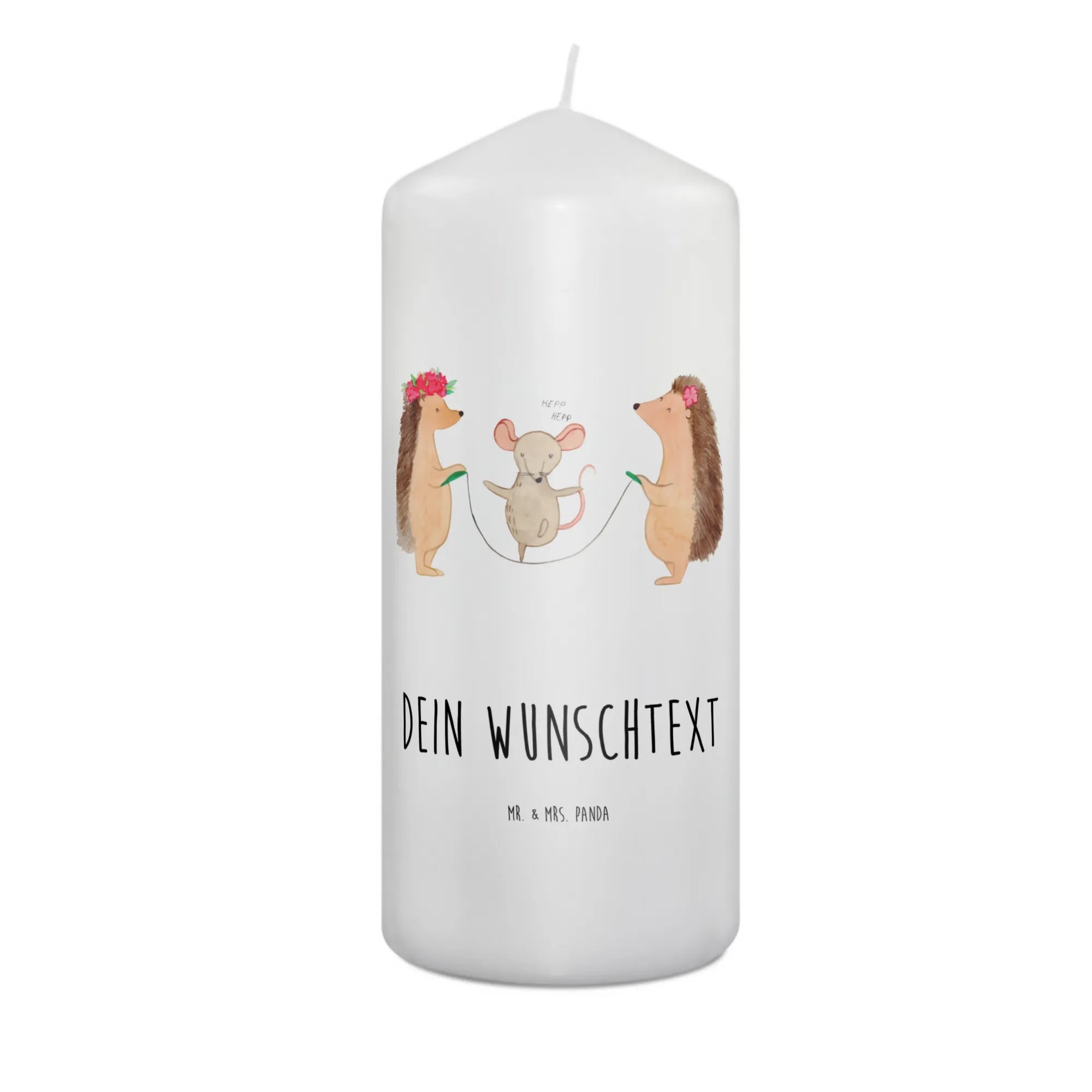 Die personalisierte Kerze "Igel Seilhüpfen" aus der Small World Kollektion von Mr. & Mrs. Panda ist das perfekte Geschenk für jeden Anlass. Ob zur Taufe, zur Kommunion oder als liebevolle Geburtstagsüberraschung – diese bezaubernde Kerze bringt Freude und eine wundervolle Stimmung in jedes Zuhause. Mit einem charmanten Igelpaar, das fröhlich Seil springt, und einer kleinen Maus, die munter mitmacht, verbreitet diese Kerze gute Laune und zaubert jedem ein Lächeln ins Gesicht.