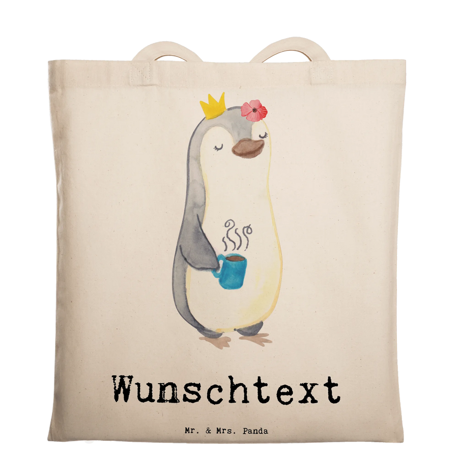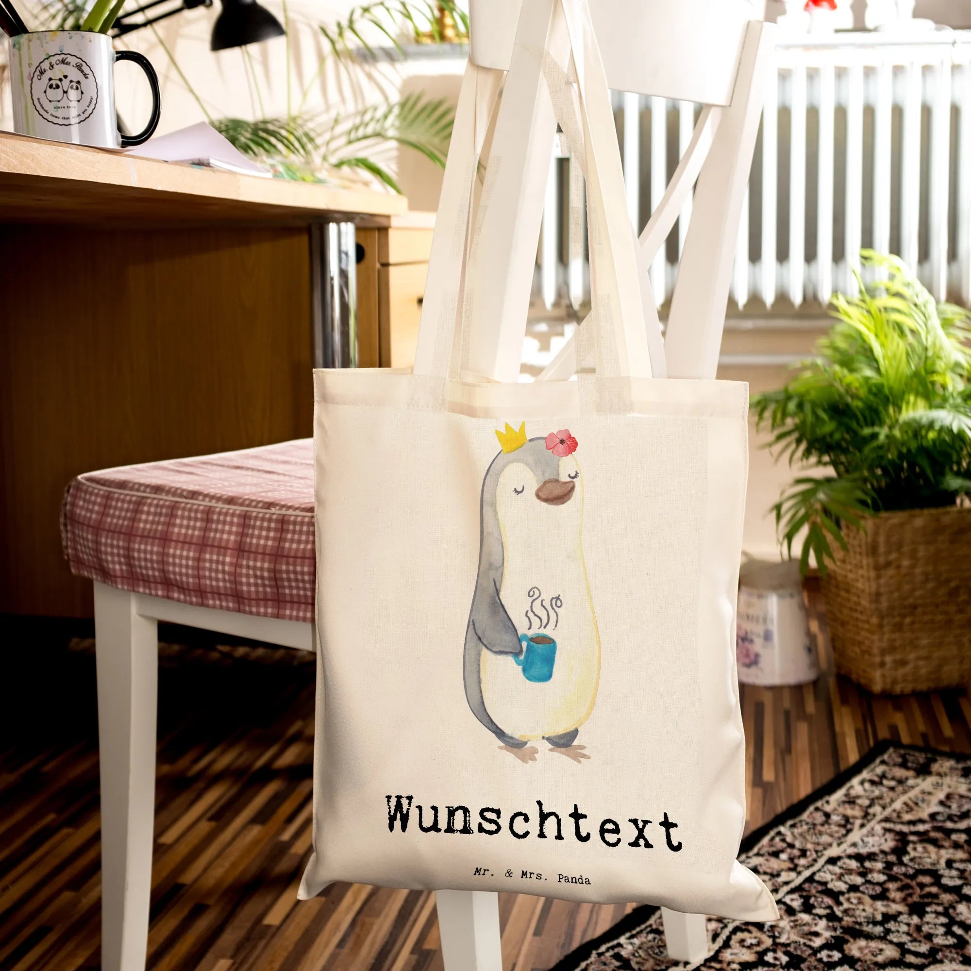 Diese einzigartige Tasche von Mr. & Mrs. Panda ist nicht nur praktisch, sondern auch ein liebevolles Zeichen der Wertschätzung. Mit einem süßen Pinguin, der eine Krone trägt und einen Kaffeebecher in der Hand hält, zaubert sie jedem ein Lächeln ins Gesicht.
