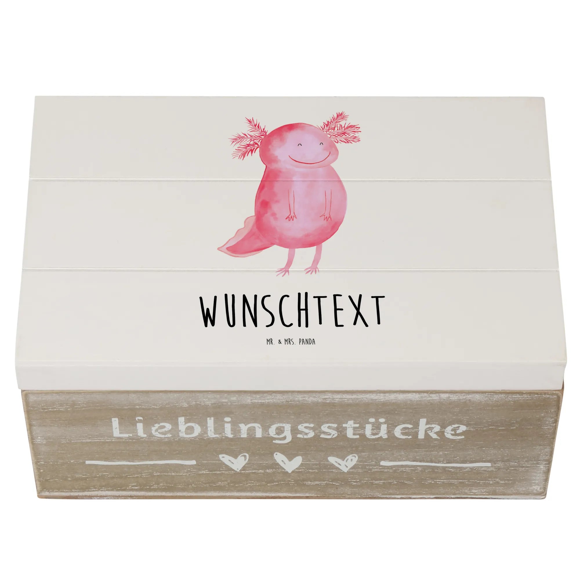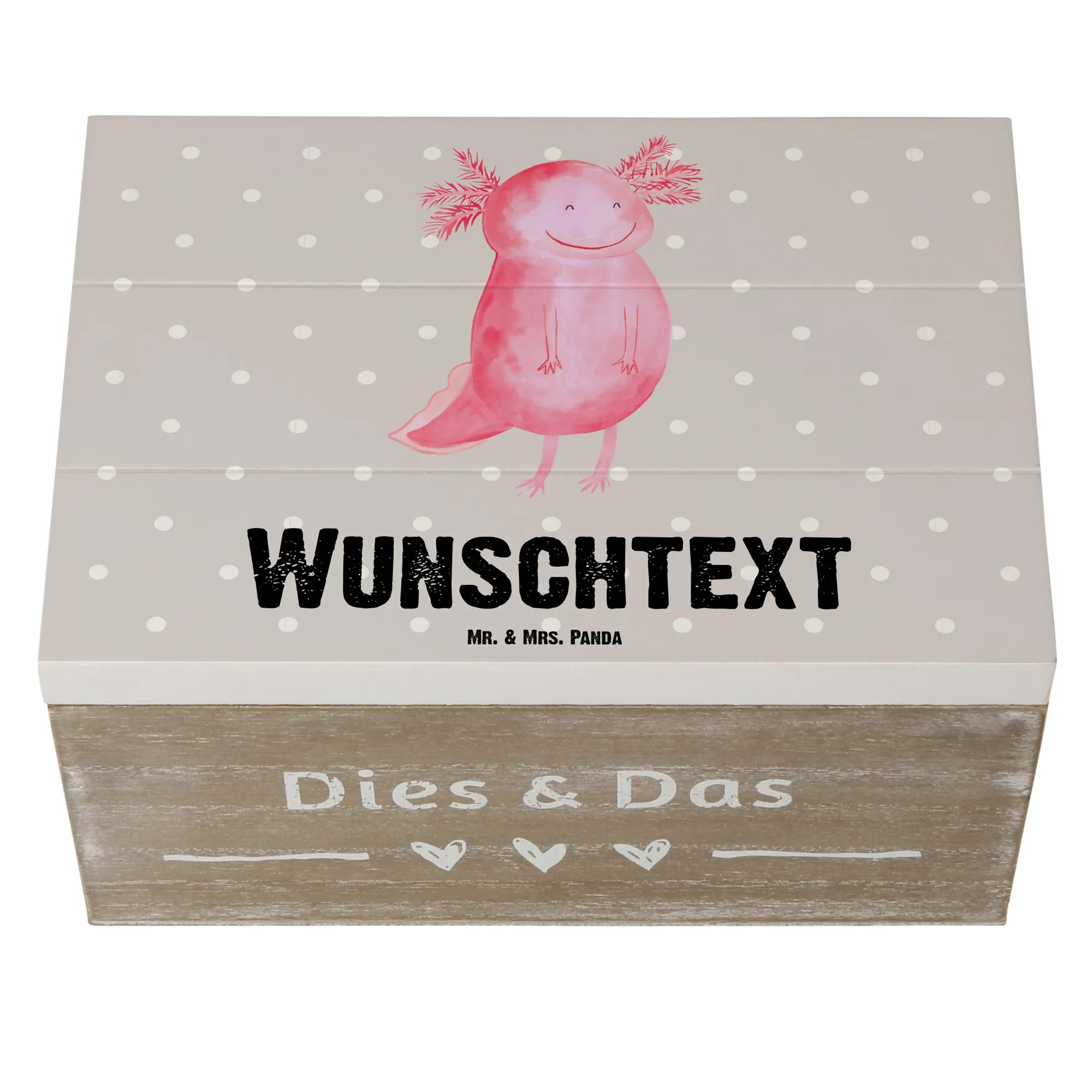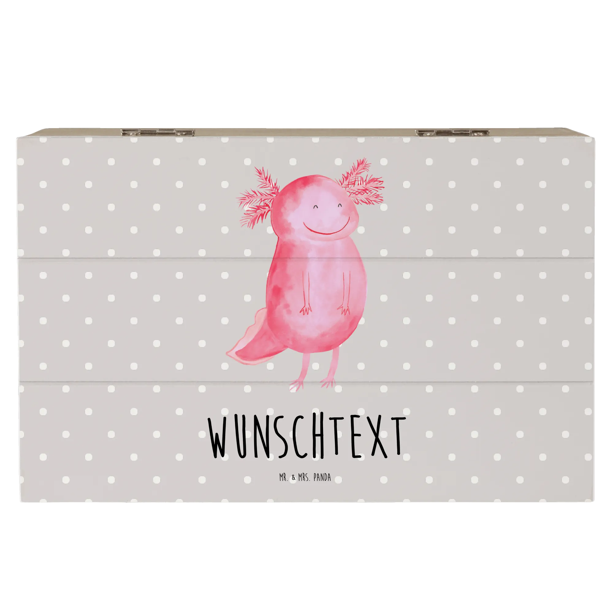 Personalizowane drewniane pudełko Aksolotl Szczęśliwy - 22 x 15 cm - Pastelowy szary