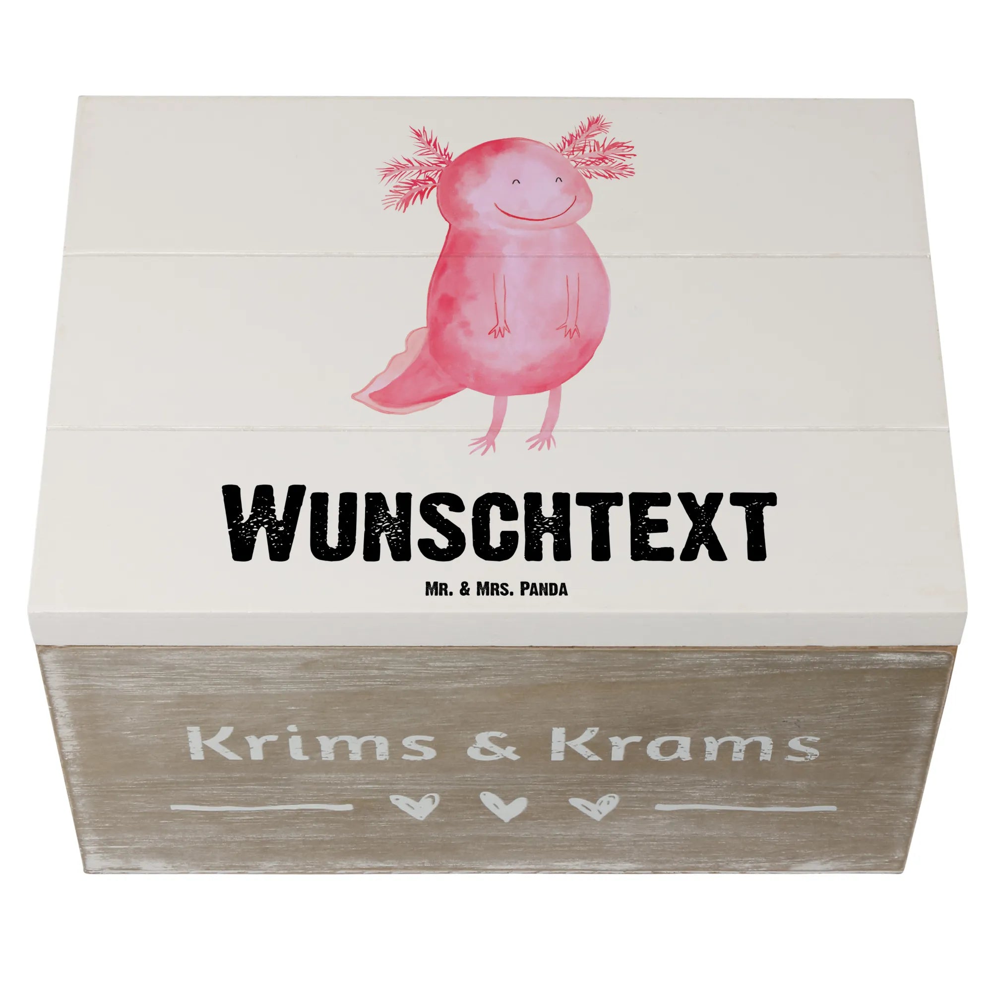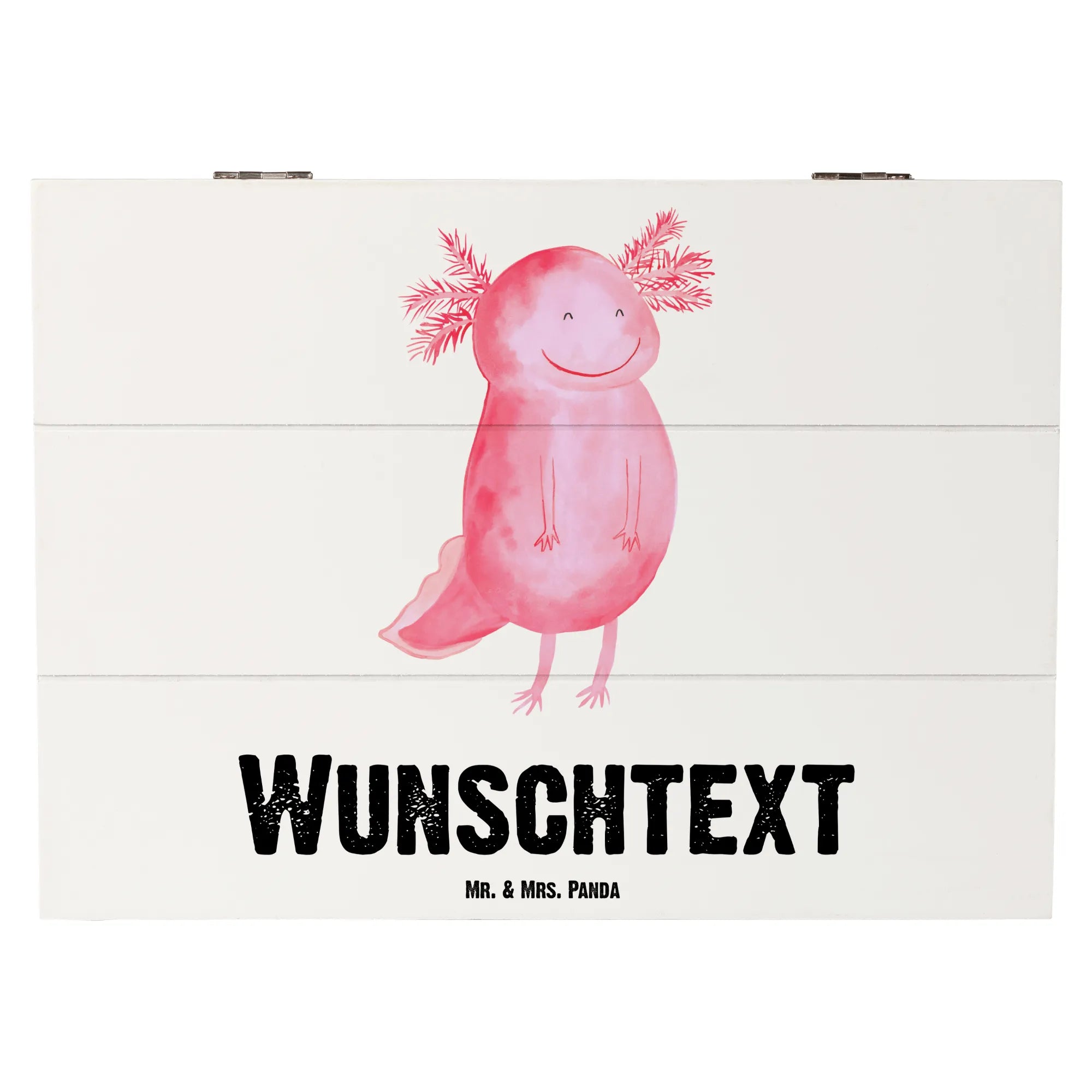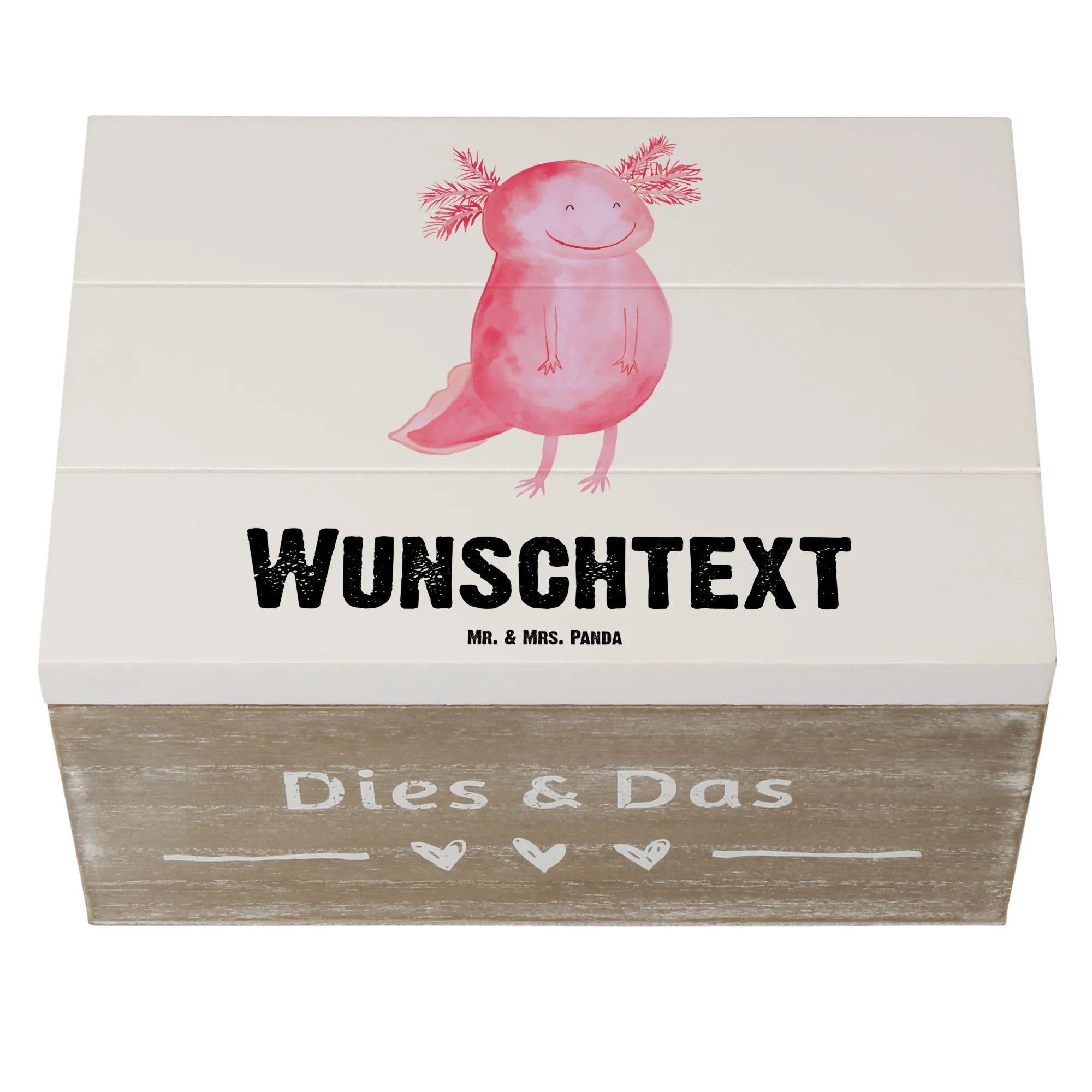 Personalizowane drewniane pudełko Aksolotl Szczęśliwy - 22 x 15 cm - Pastelowy szary