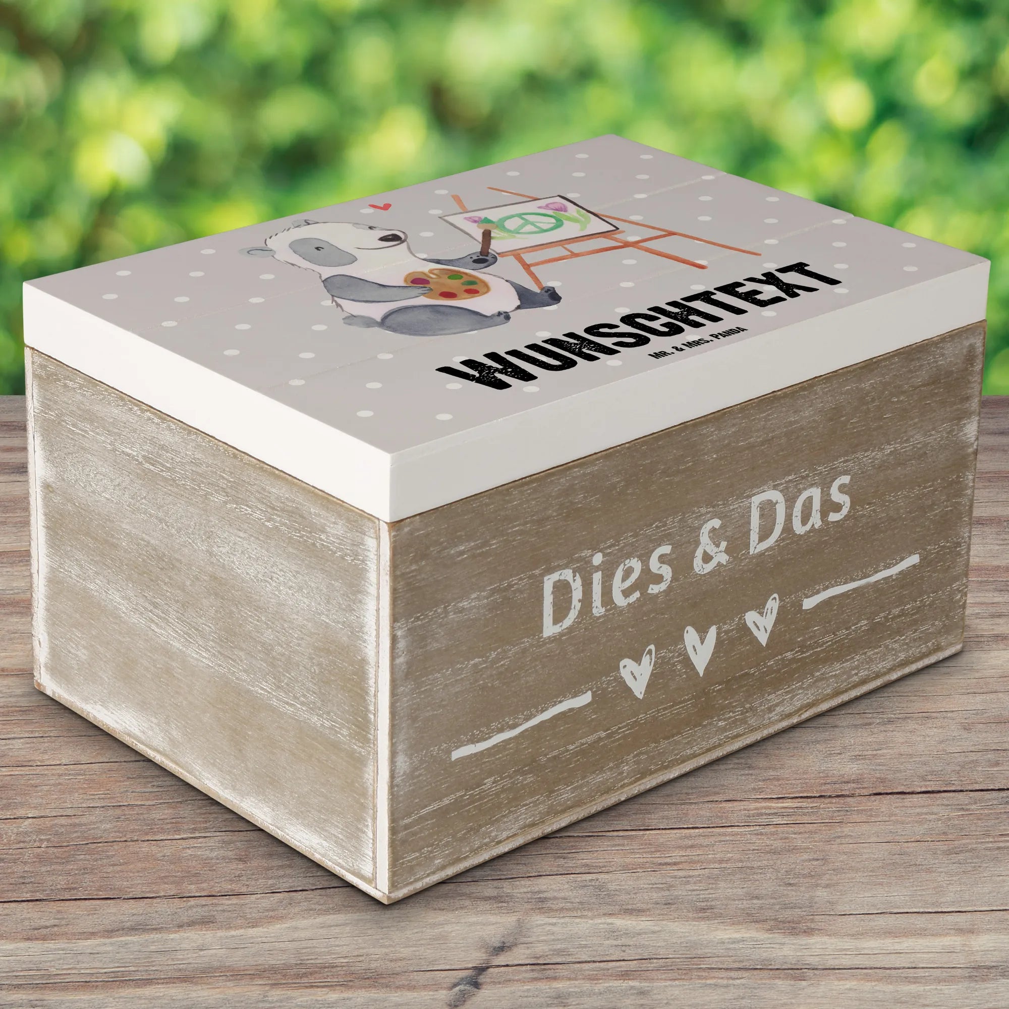 Personalizowane drewniane pudełko Artysta serce - 22 x 15 cm - Biały