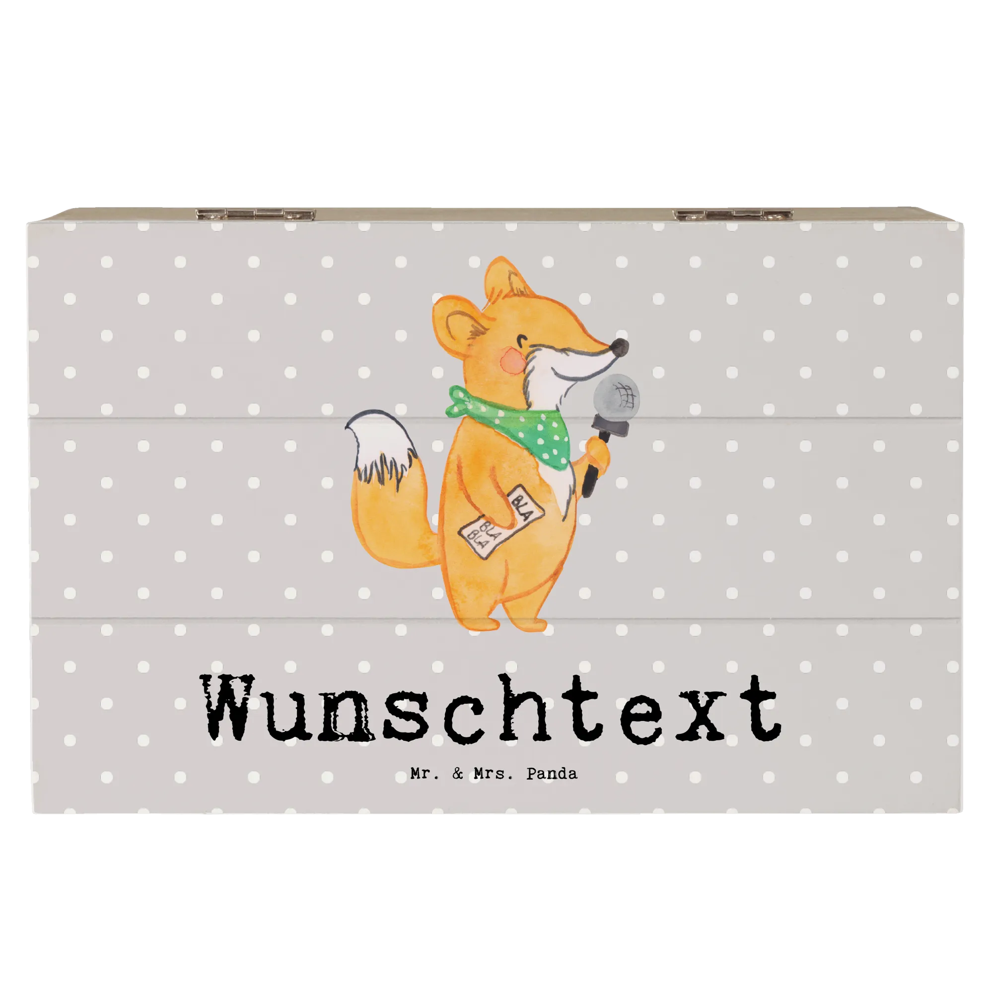 Personalizowane drewniane pudełko Dziennikarz Serce - 22 x 15 cm - Biały