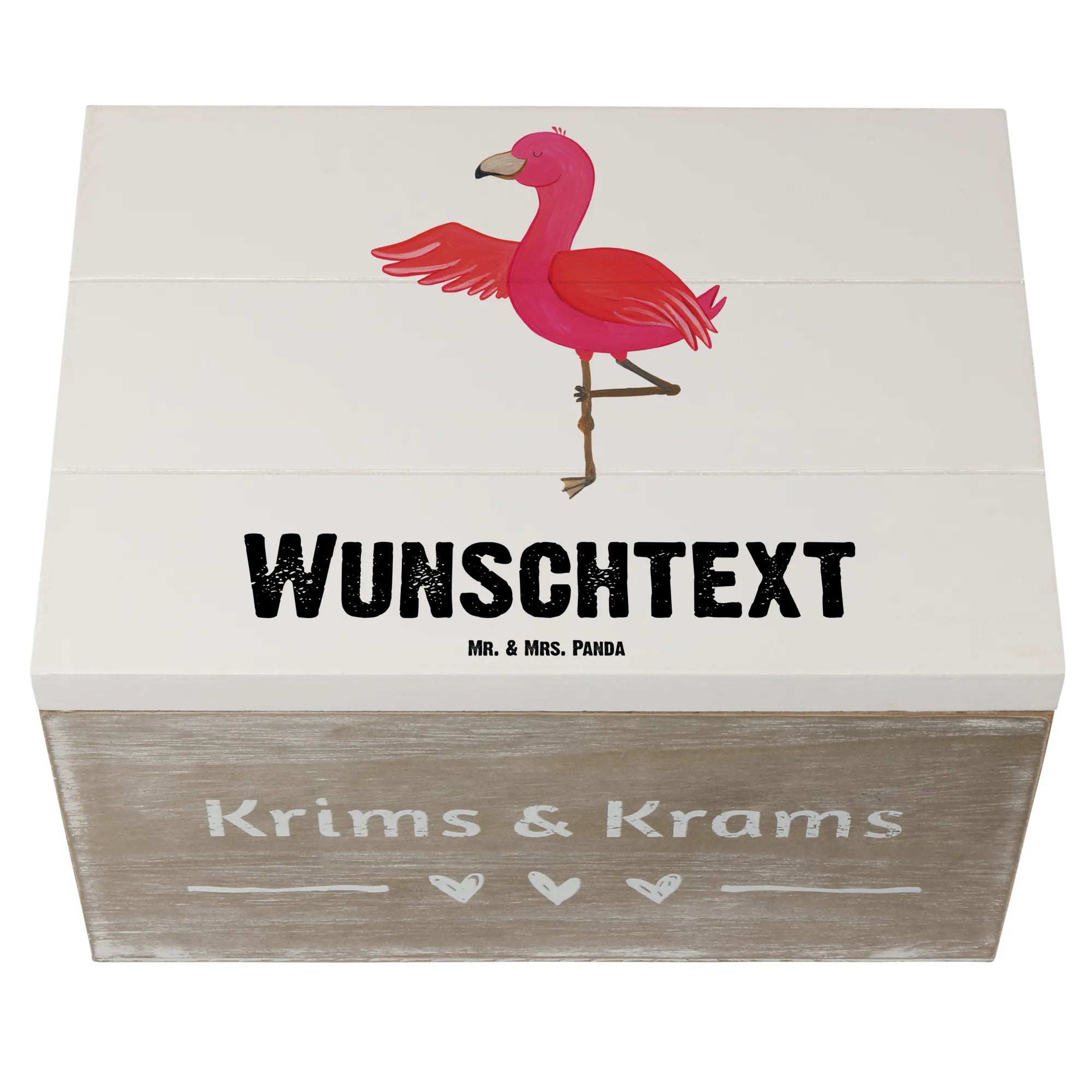 Personalizowane drewniane pudełko Flamingo joga - 22 x 15 cm - biały