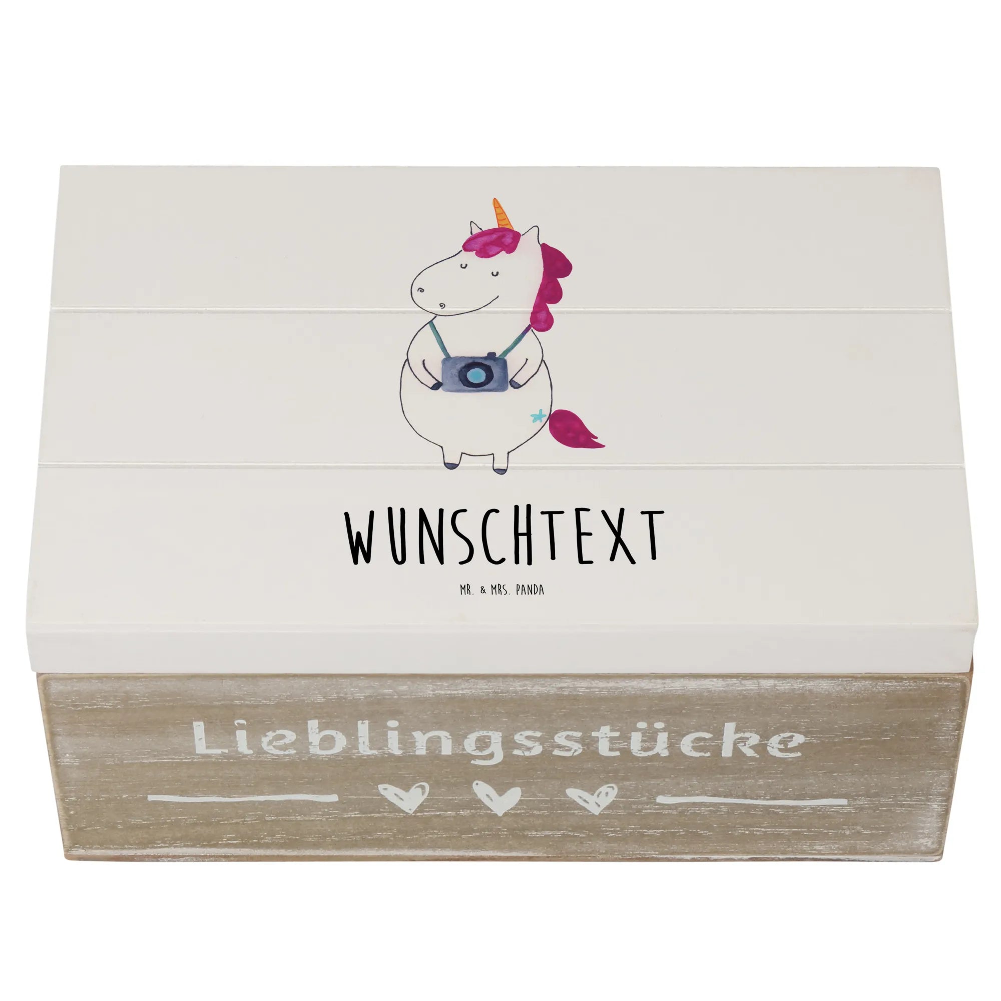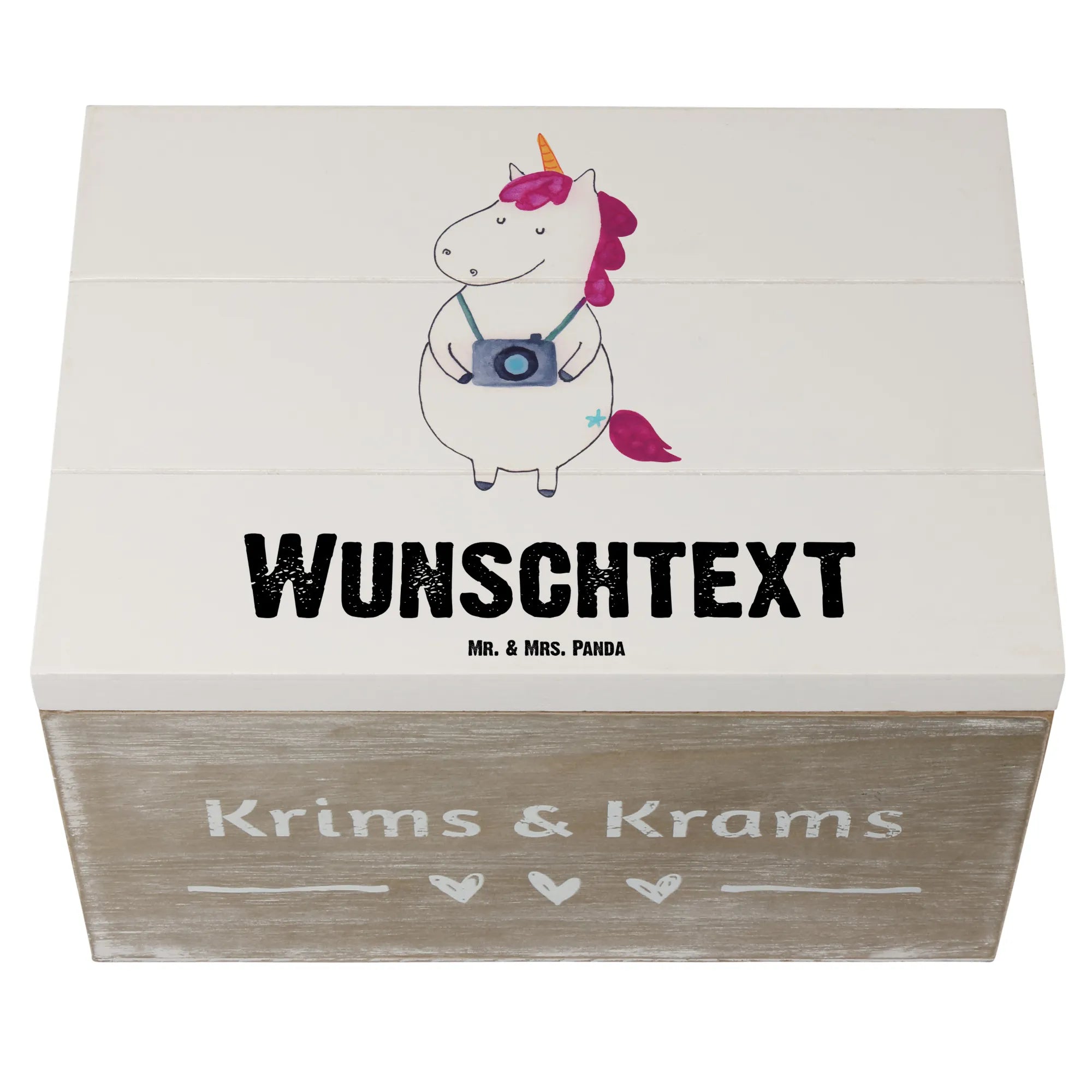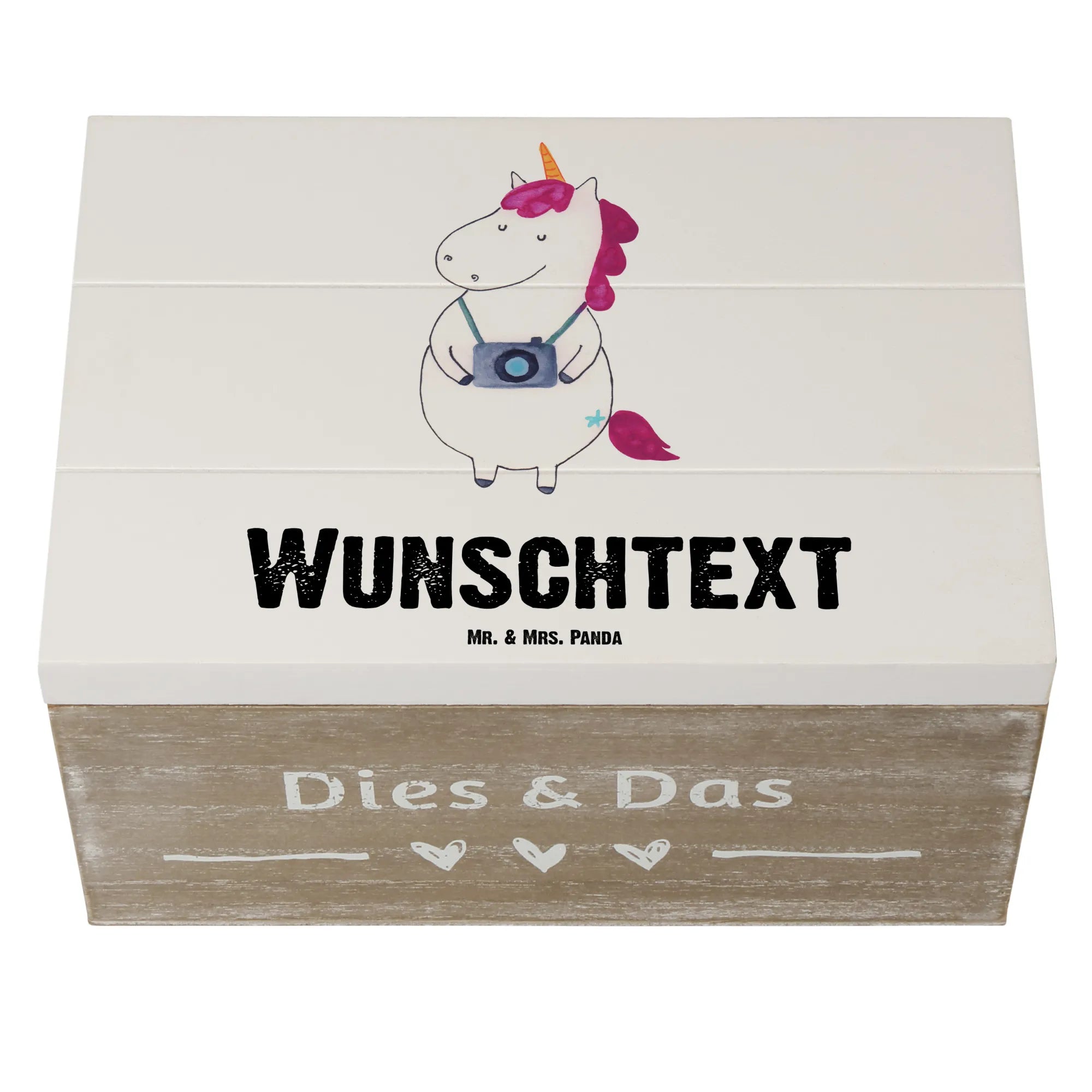 Personalizowane drewniane pudełko Jednorożec fotograf - 22 x 15 cm